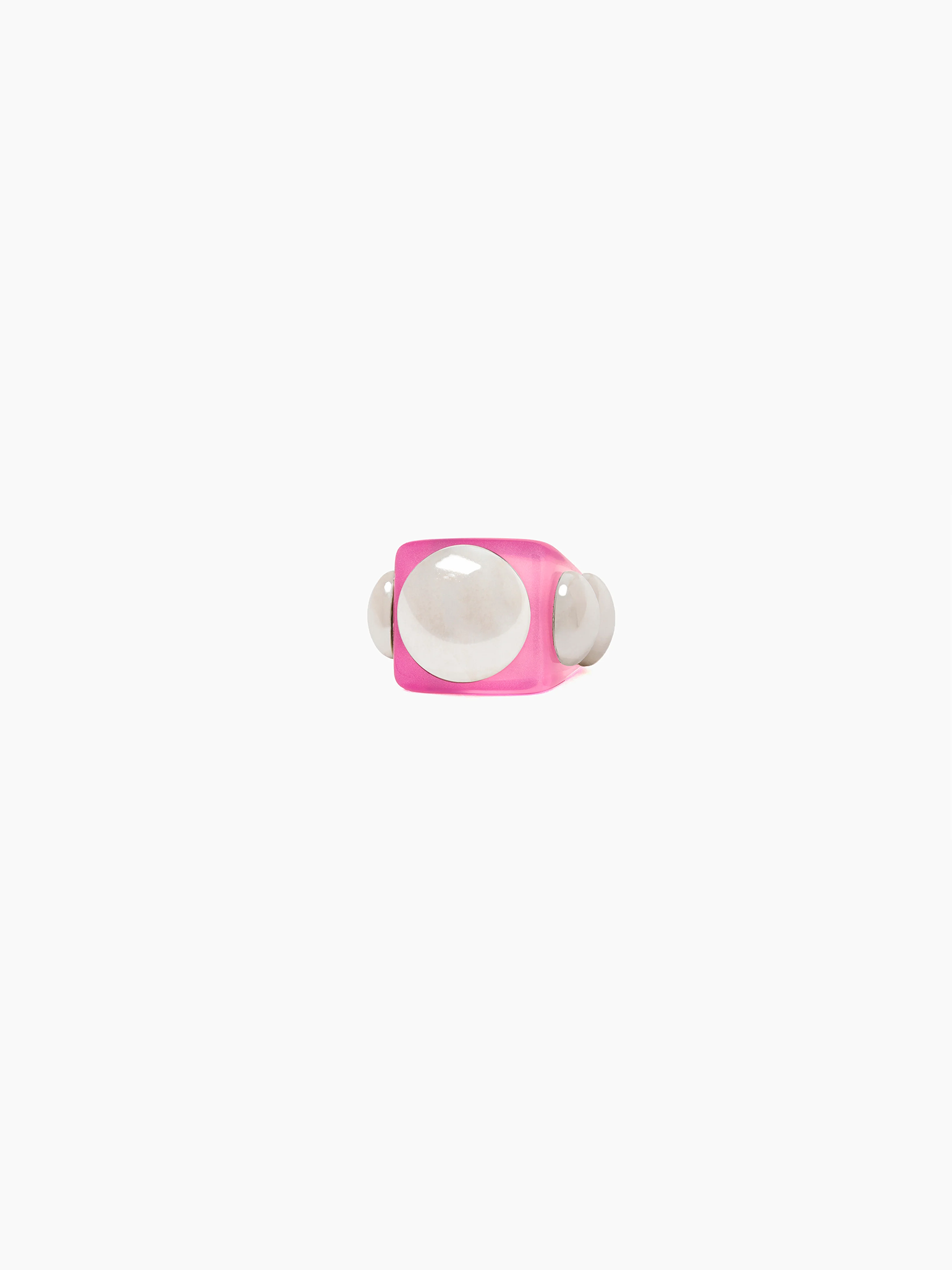 • Silver oval, Silver circle on a base of a pearl pink square ring