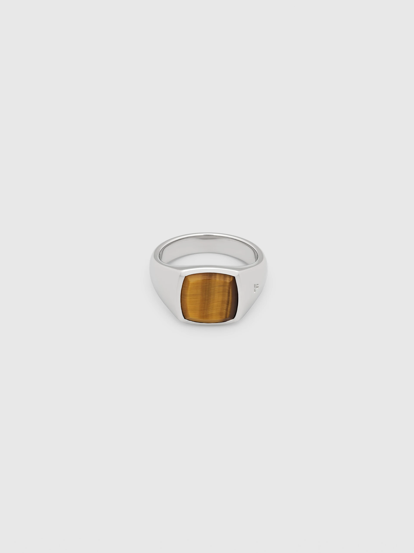 - Kay Ring Tiger Eye is a medium sized signet ring, a Tom Wood classic. It holds a custom cut Tiger Eye stone, bezel set on a bright polished silver surface