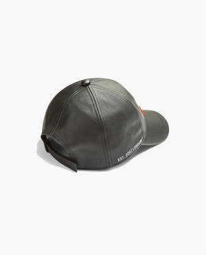 • Baseball cap crafted from premium soft leather with raised embroidered seasonal artwork at the front panel and velcro closure at the back