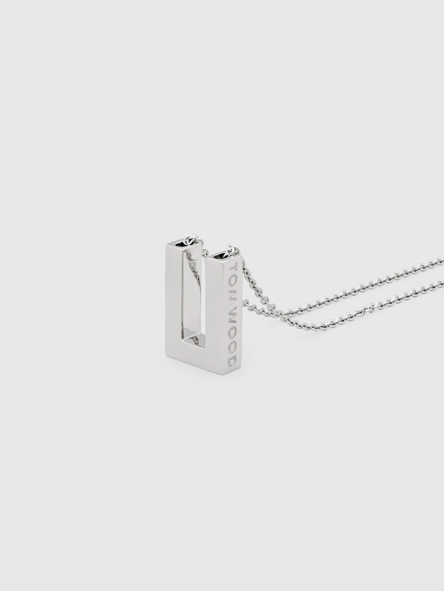 - A minimalist pendant inspired by brutalist architecture, made with 925 sterling silver in a polished white rhodium plating. All metals are 100% recycled