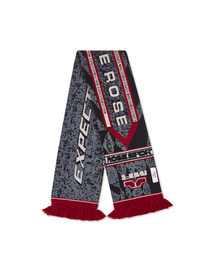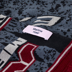 • Martine Rose Reversible Scarf is knitted with bold slogans and graphic logos, it plays between mass-produced nostalgia and high-fashion commentary — a tongue-in-cheek nod to sporting pride reimagined for the runway