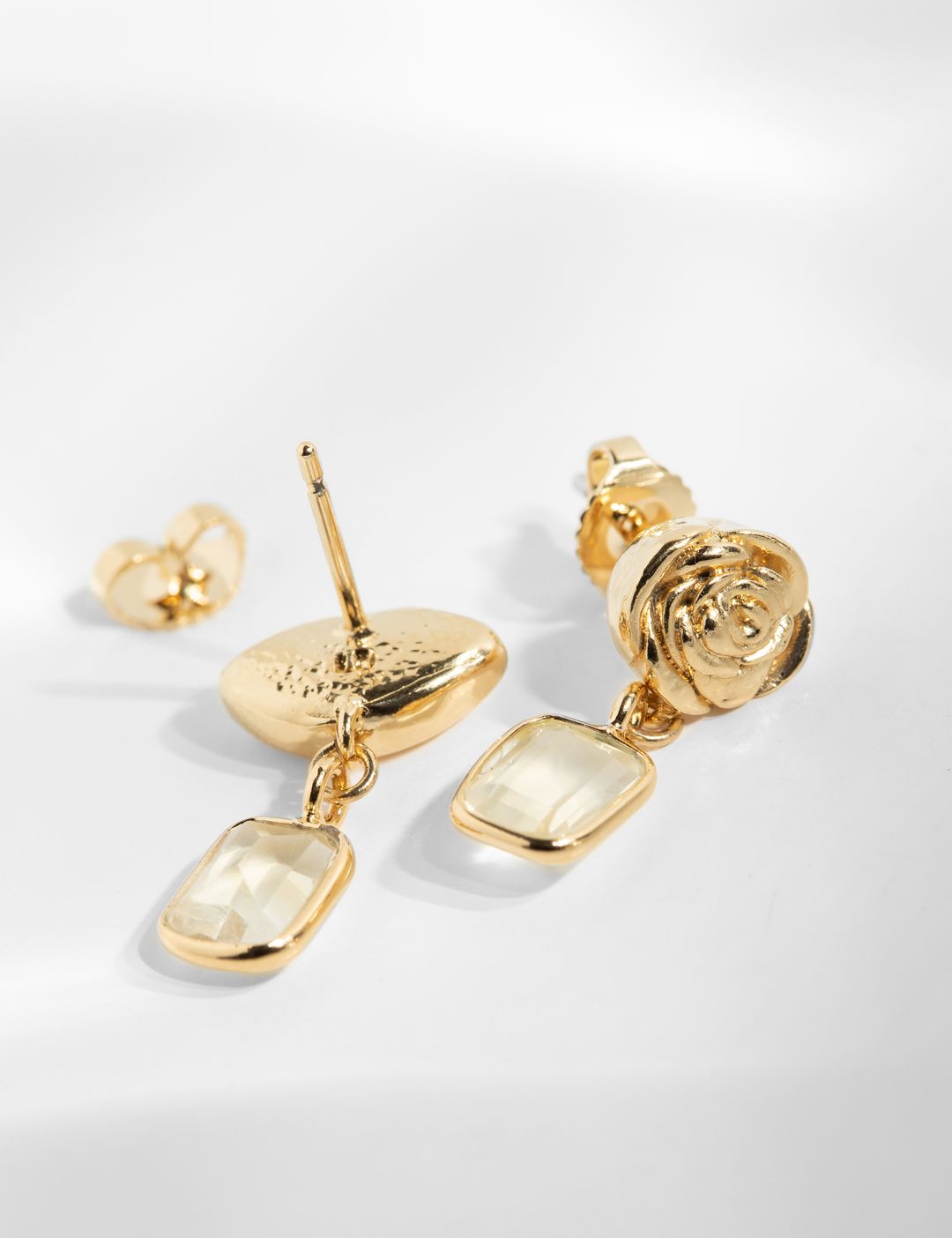 The asymmetry of these earrings shakes up their delicate and elegant look. When the light hit through the light yellow citrine stone, they make you shine even brighter.