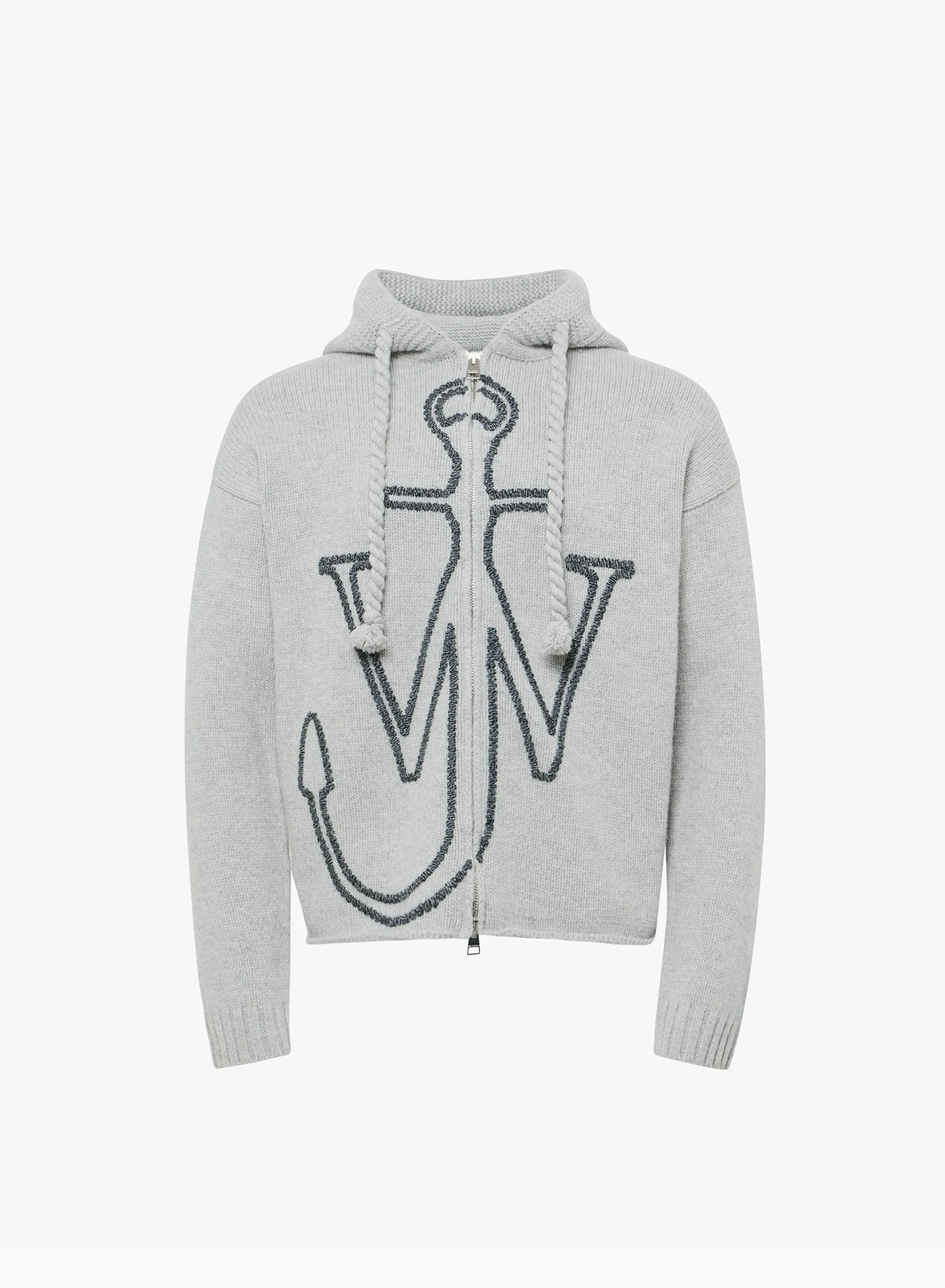 Relaxed fit, knitted zipped-hoodie complete with anchor embroidery design
