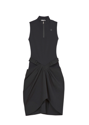 This hybrid-tailored dress features an innovative cut specifically designed to flatter the waist.