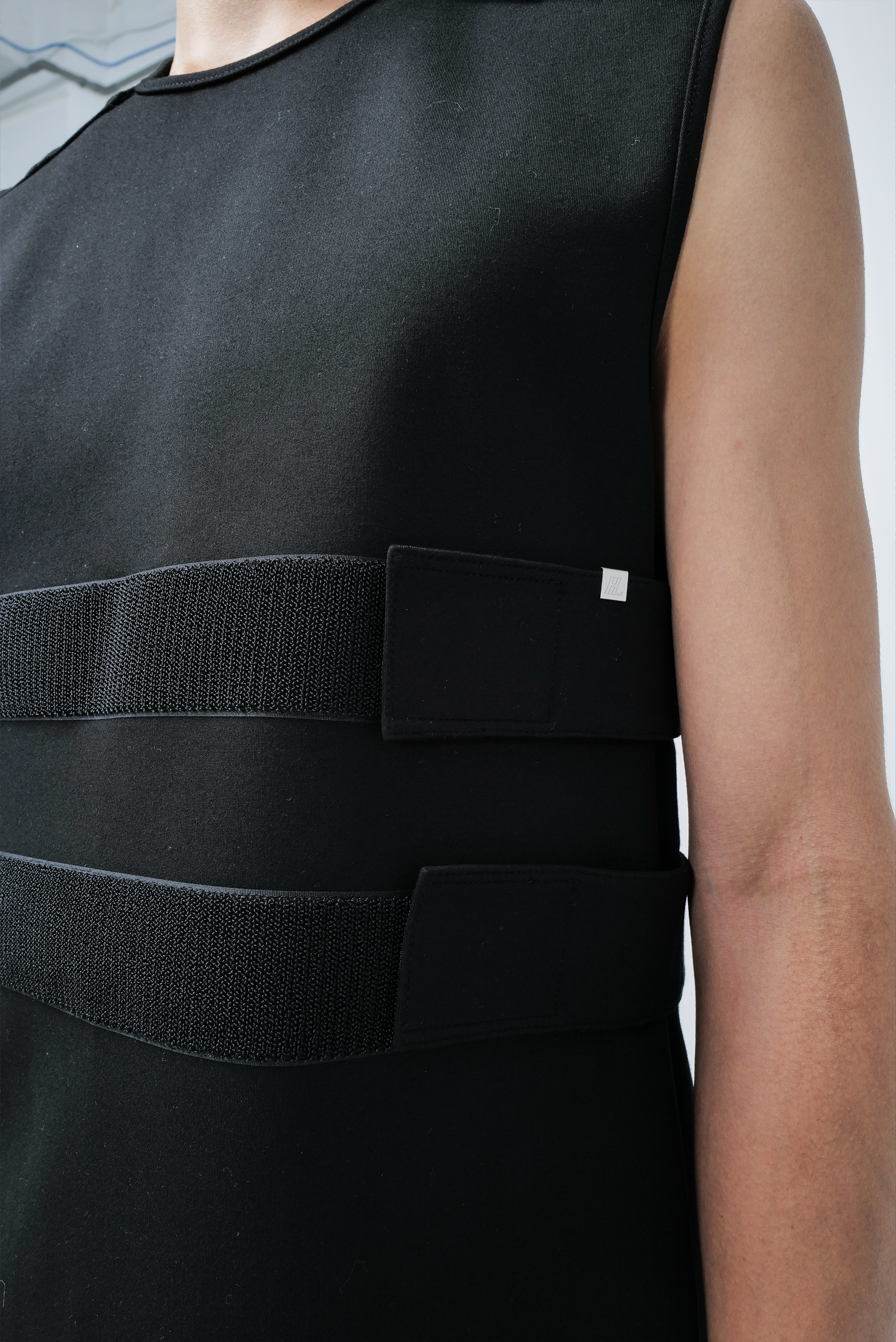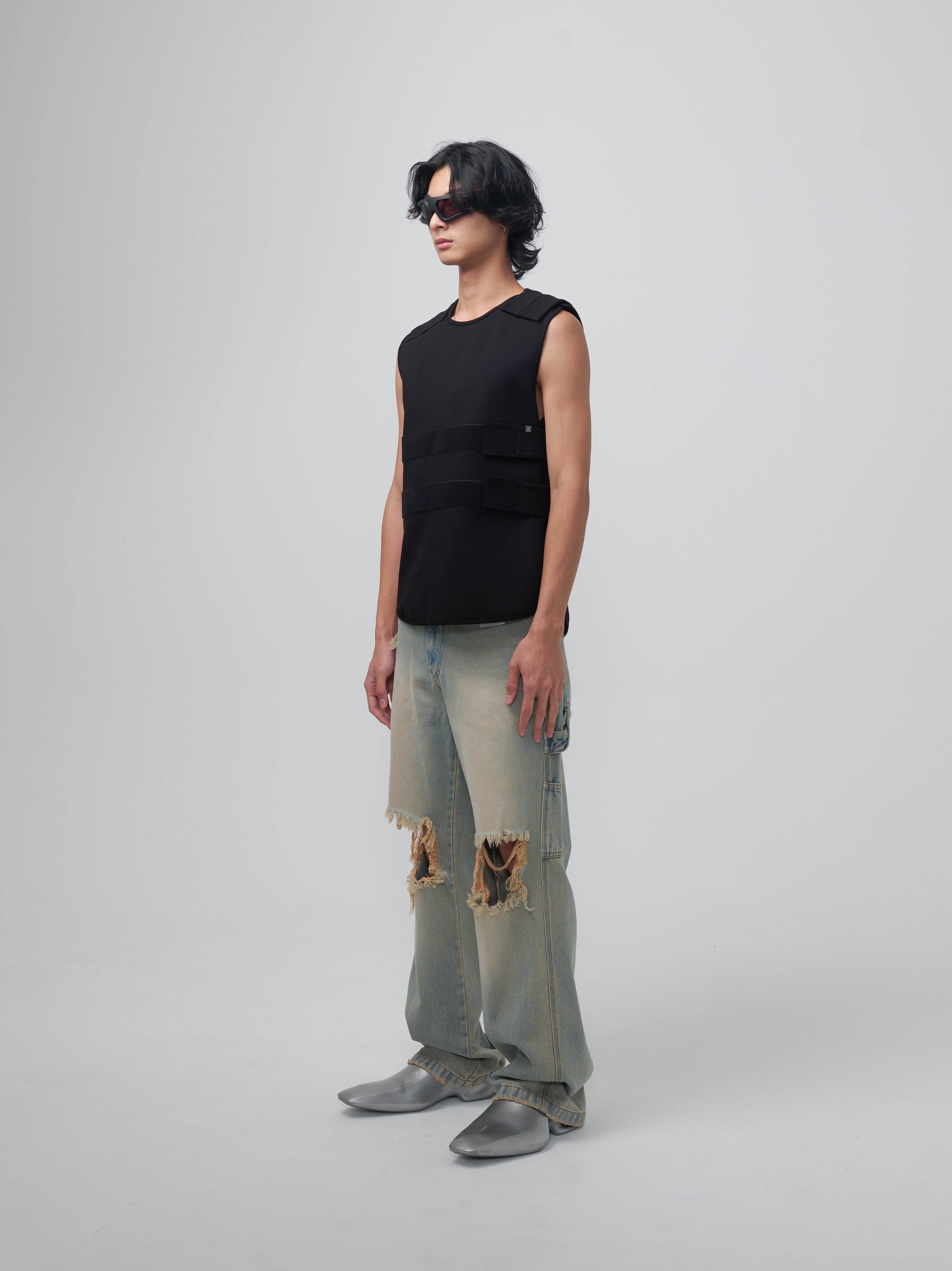 - This archival update incorporates functional details from tactical vests, with plush velcro tabs that can be cinched closed or left open for layered styling.