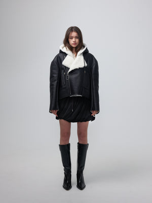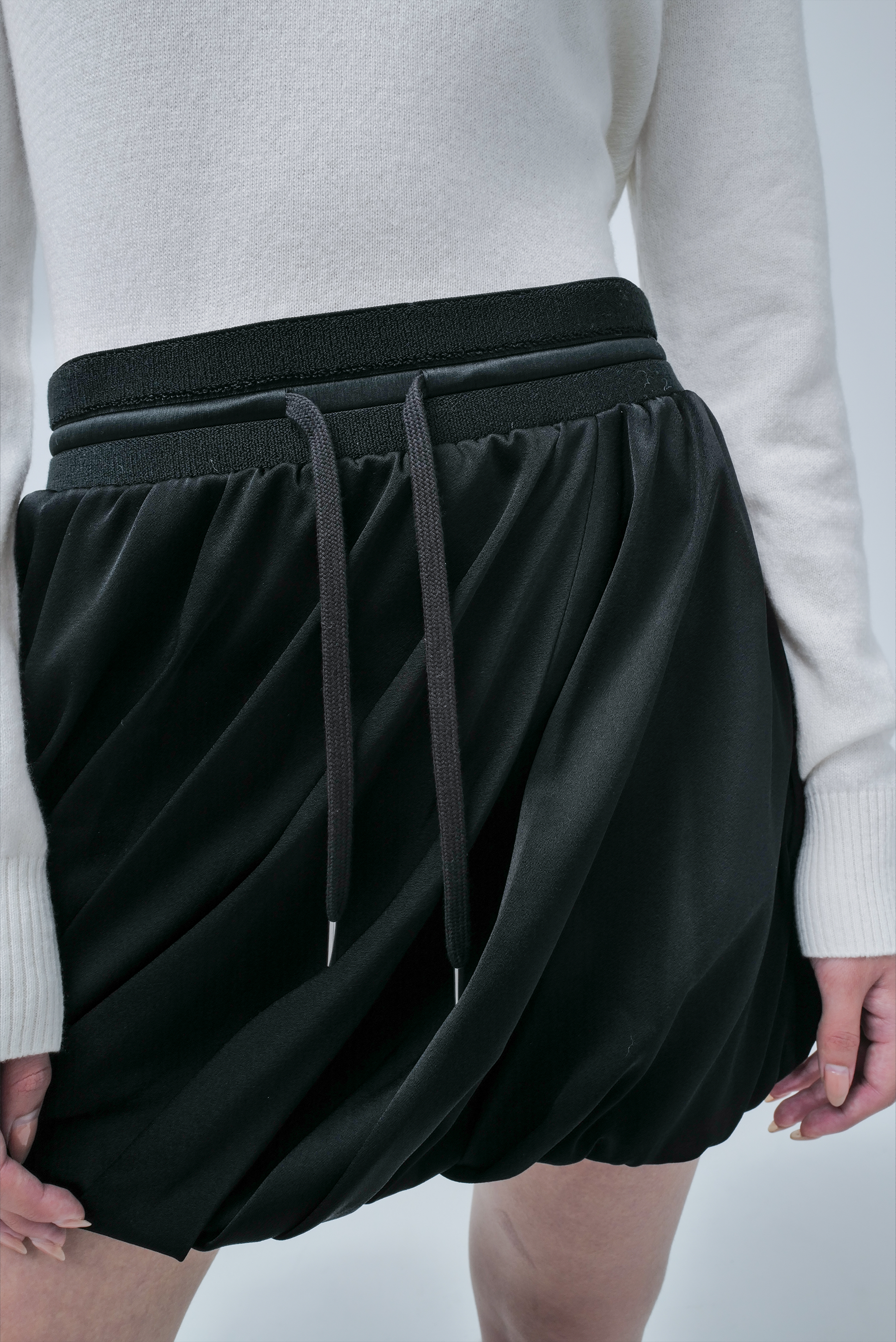 - Mini skirt in glossy satin crepe. Voluminous cut with a high waist that flows into a bubble hem.