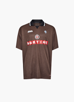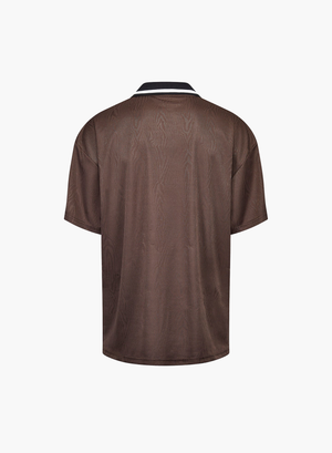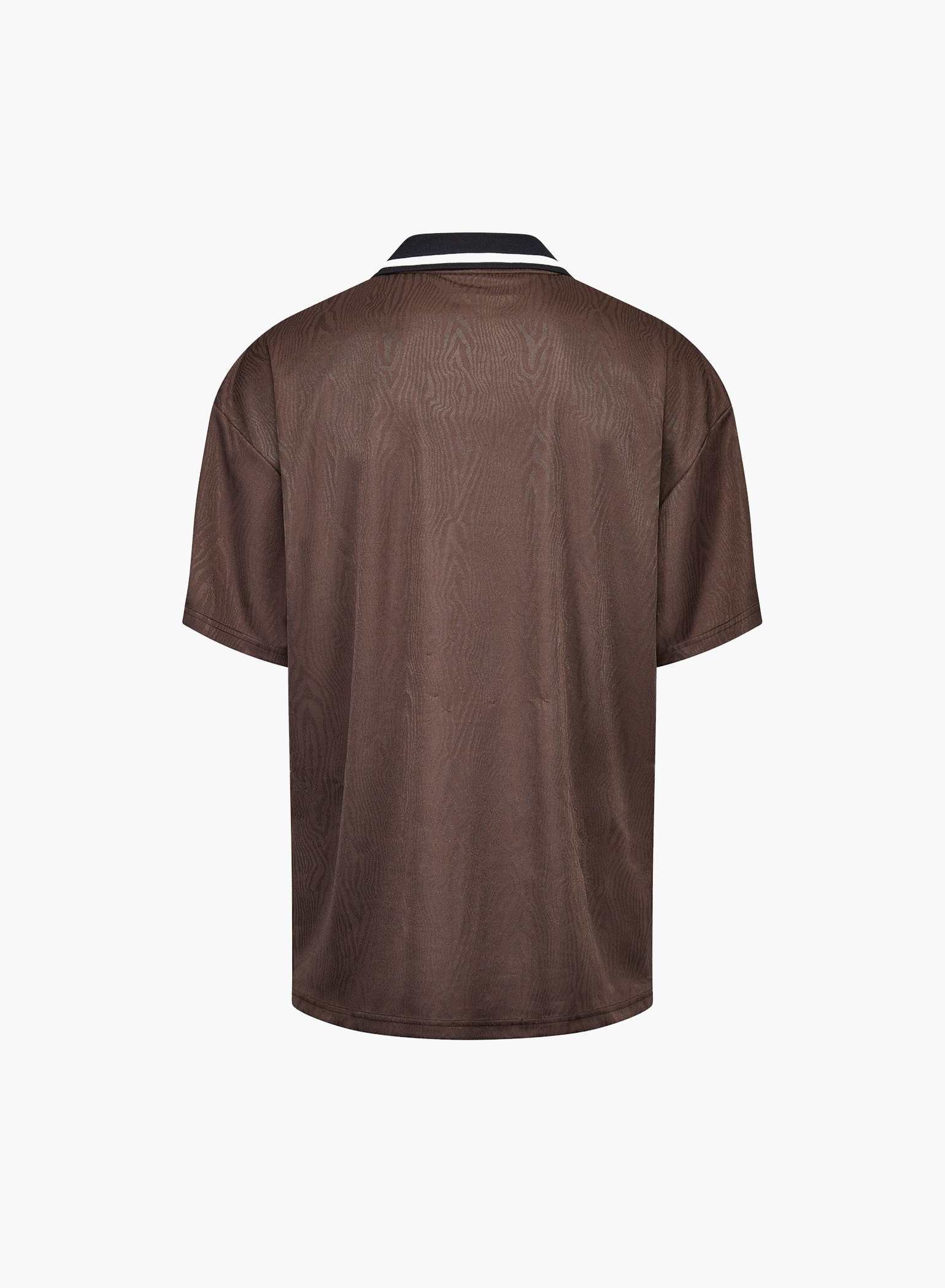 - Loose fitting football top in our seasonal jacquard brown moire jersey