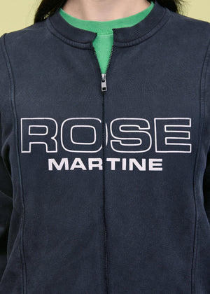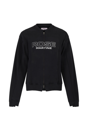 • Shrunken fit crew neck in washed black with cut through centre zip, panelling details, and screen printed seasonal logo at the chest