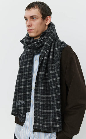 - The Wool Scarf is made from a soft wool with a subtle pilling effect, in a light and dark grey check