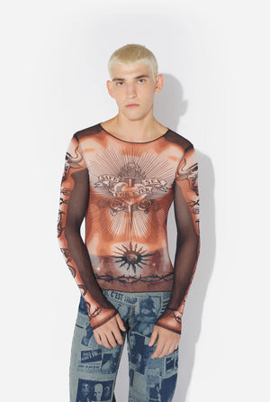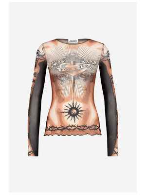 Long Sleeves Crew Neck Top - Printed "safe Sex Tatoo"