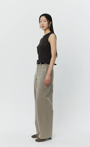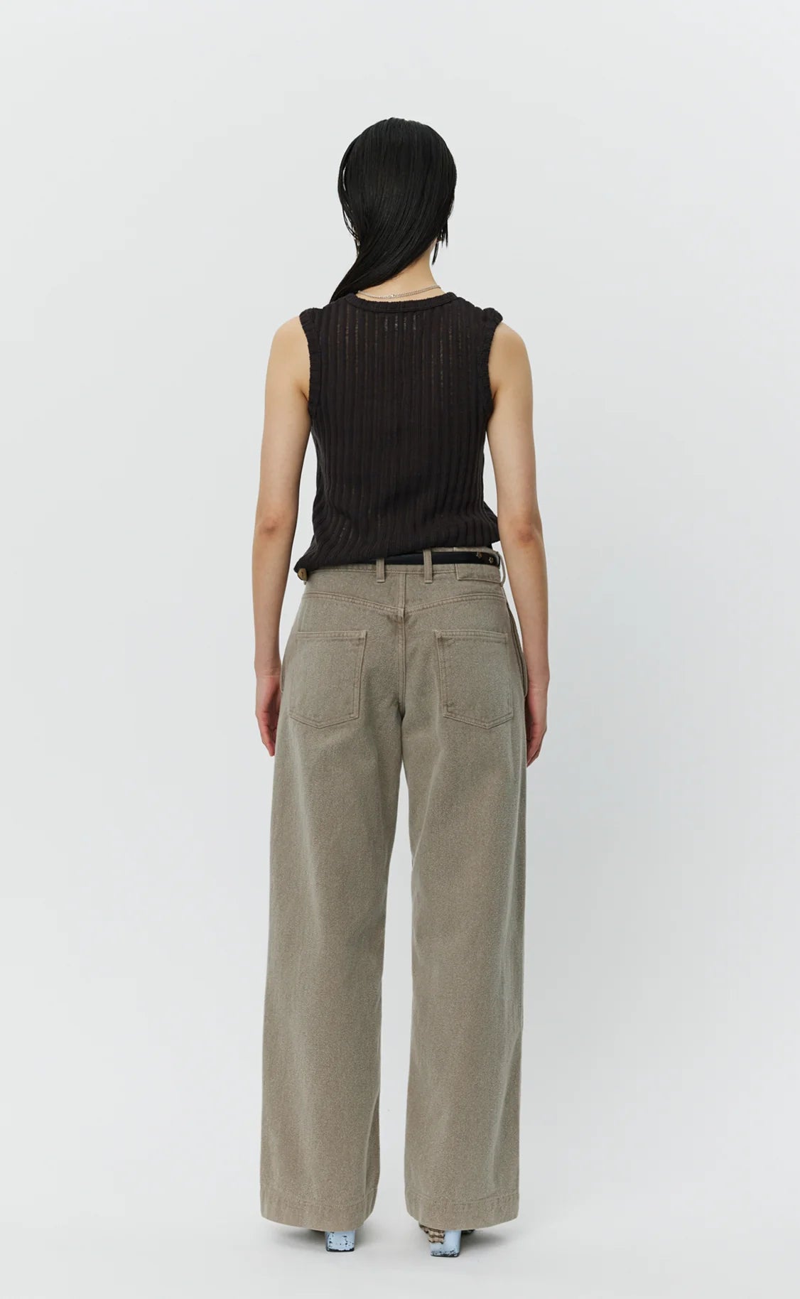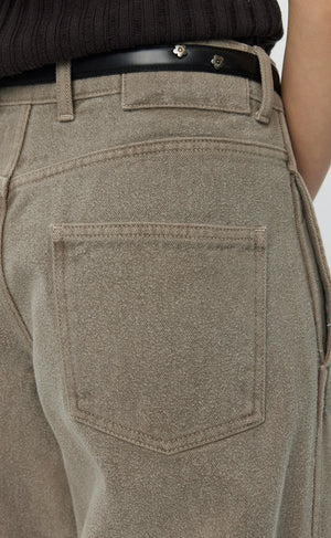 • Cut from a soft mineral dye washed organic cotton denim with a brushed surface in a light brown