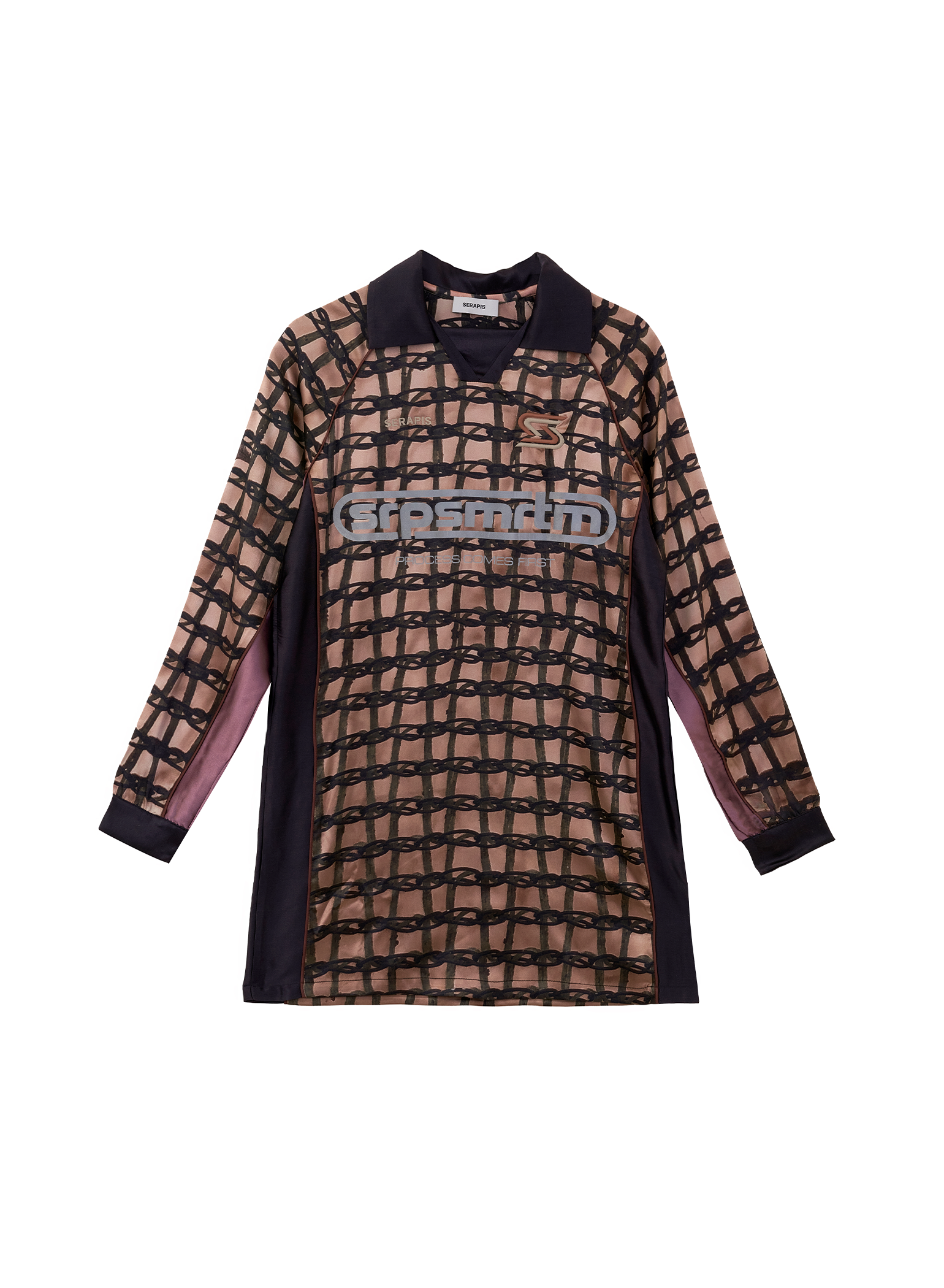- Crate Grille long sleeve football jersey entirely made of satin silk with a lustrous sheen