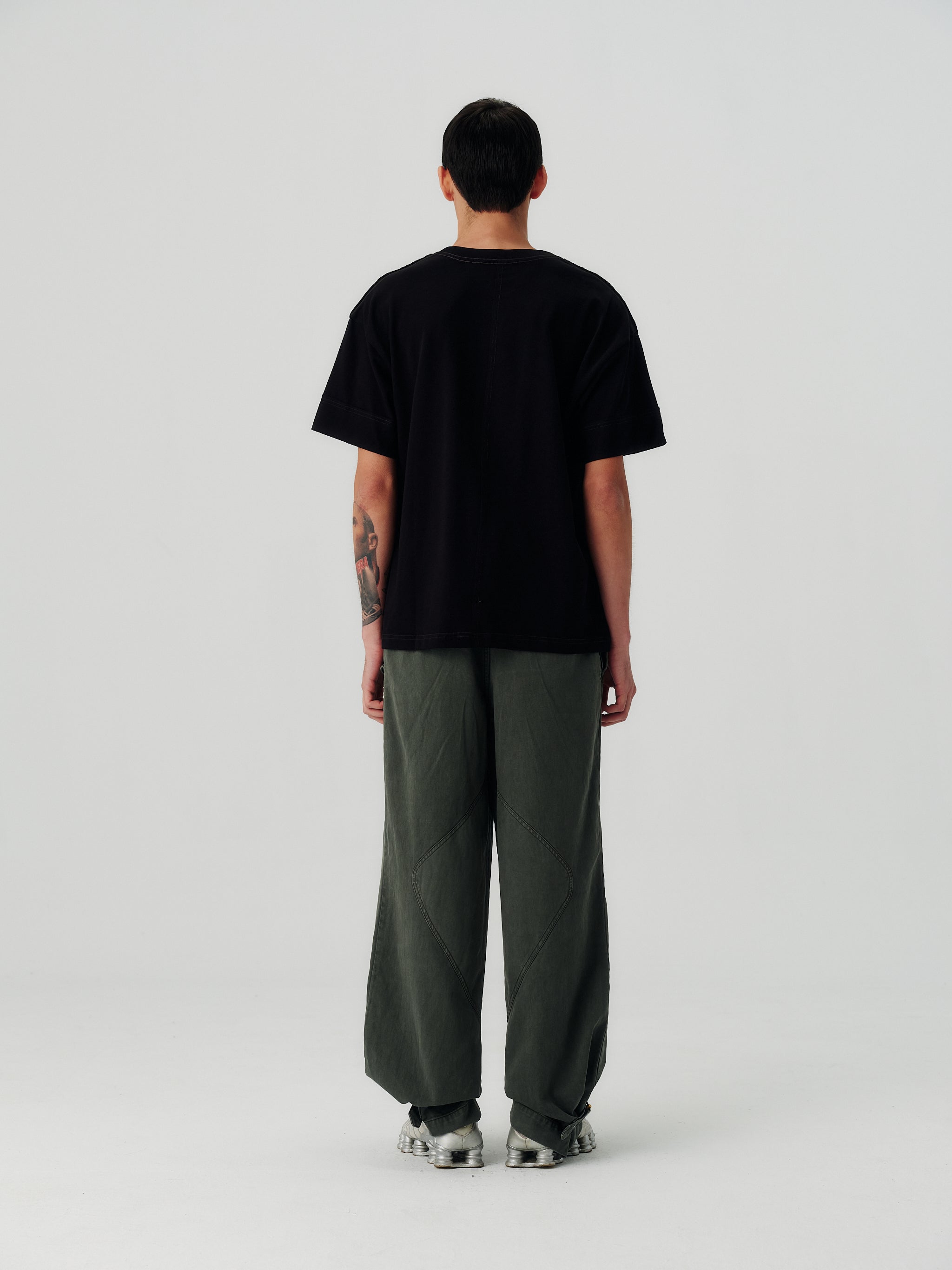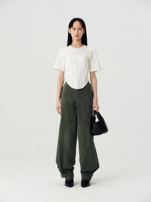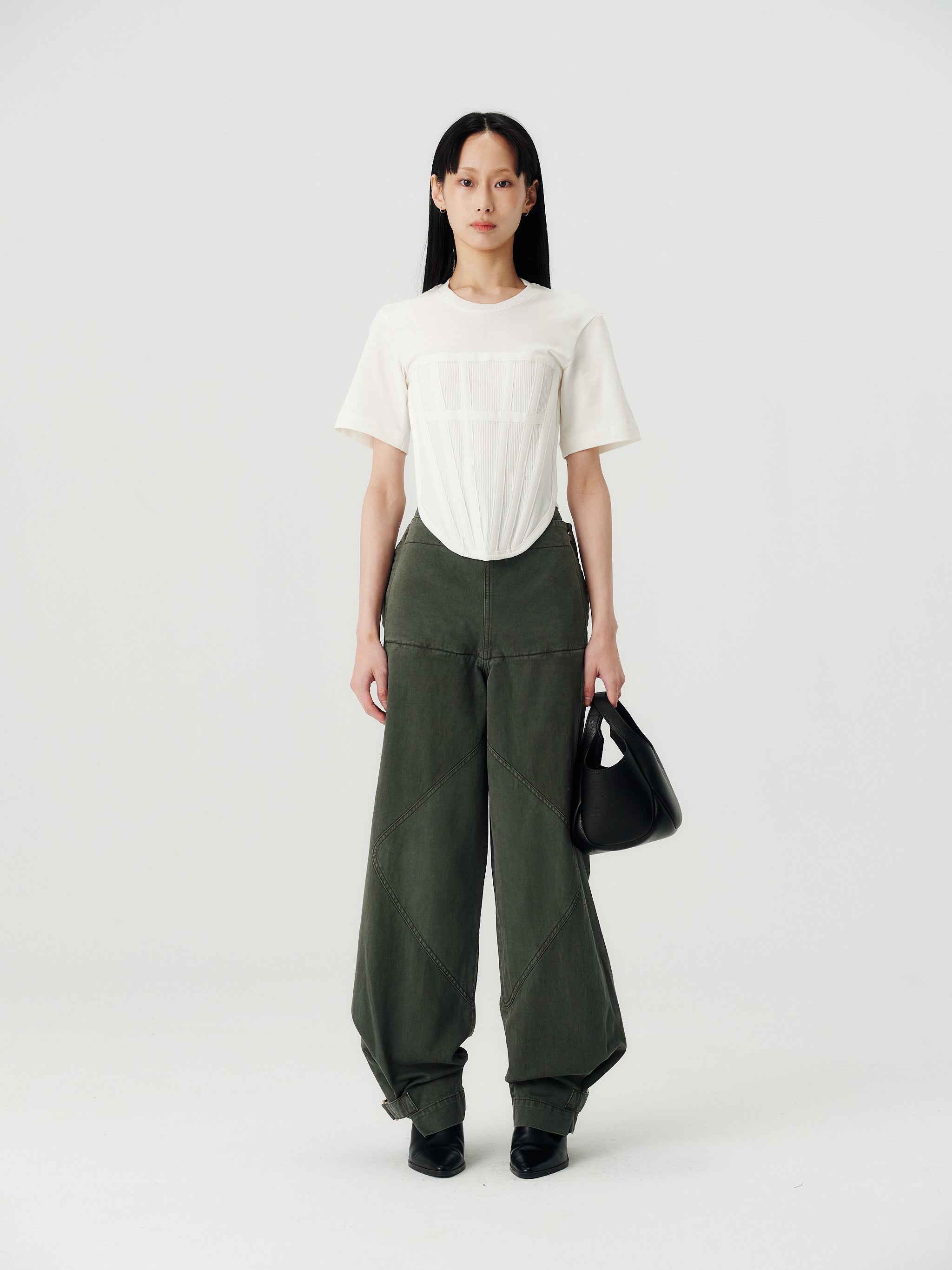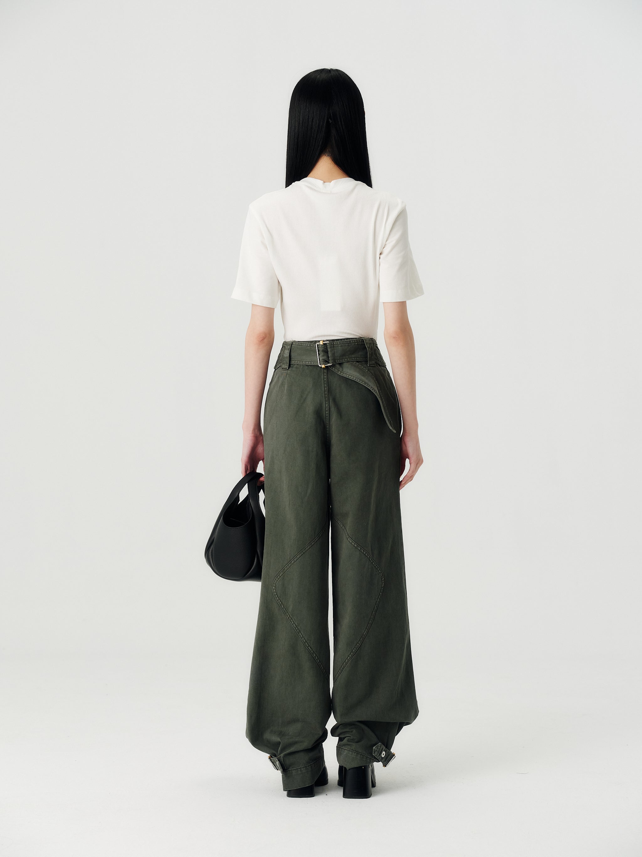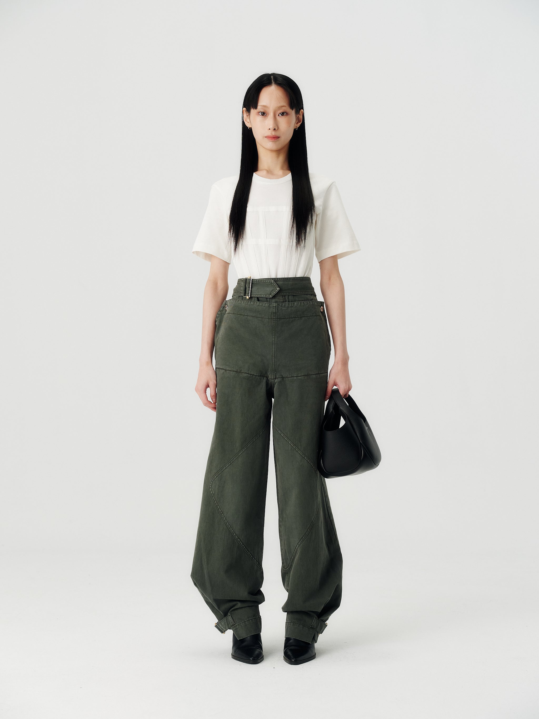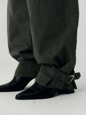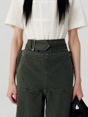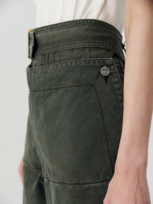 - High-rise pant cut in a garment dyed pure cotton canvas