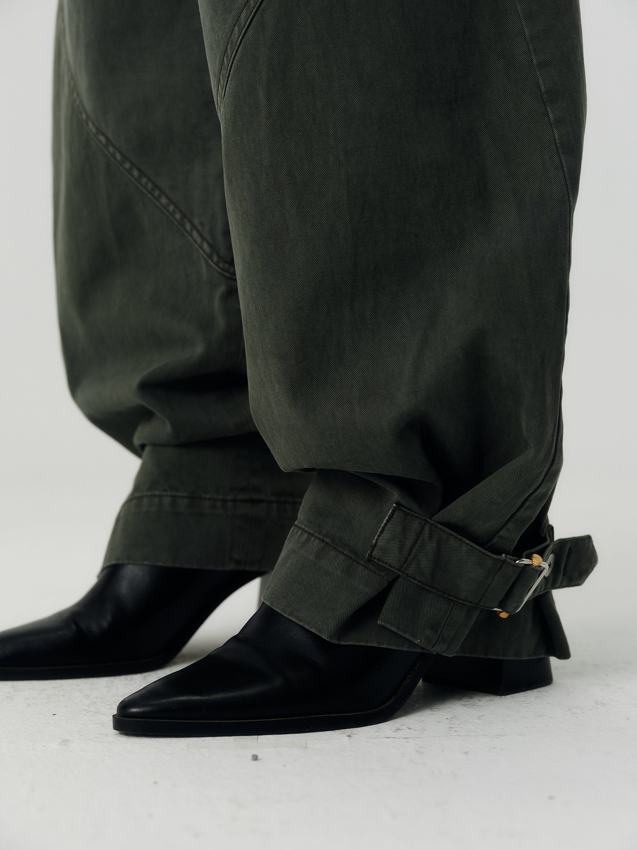 - Straps at ankle and back waist designed to be cinched with slider buckles