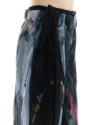 - Rope pants made of semi transparent mesh polyester featuring a cotton black rope belt, and elastic waistband, and side pocket