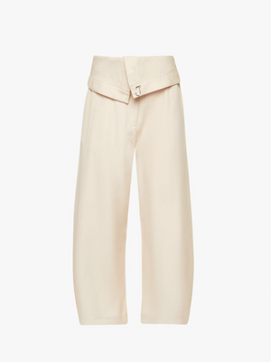 - Curved wide-leg trouser complete with fold over waistband