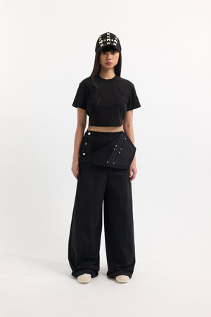- Featuring a foldover panel at waist with toolbelt patch pocketing
