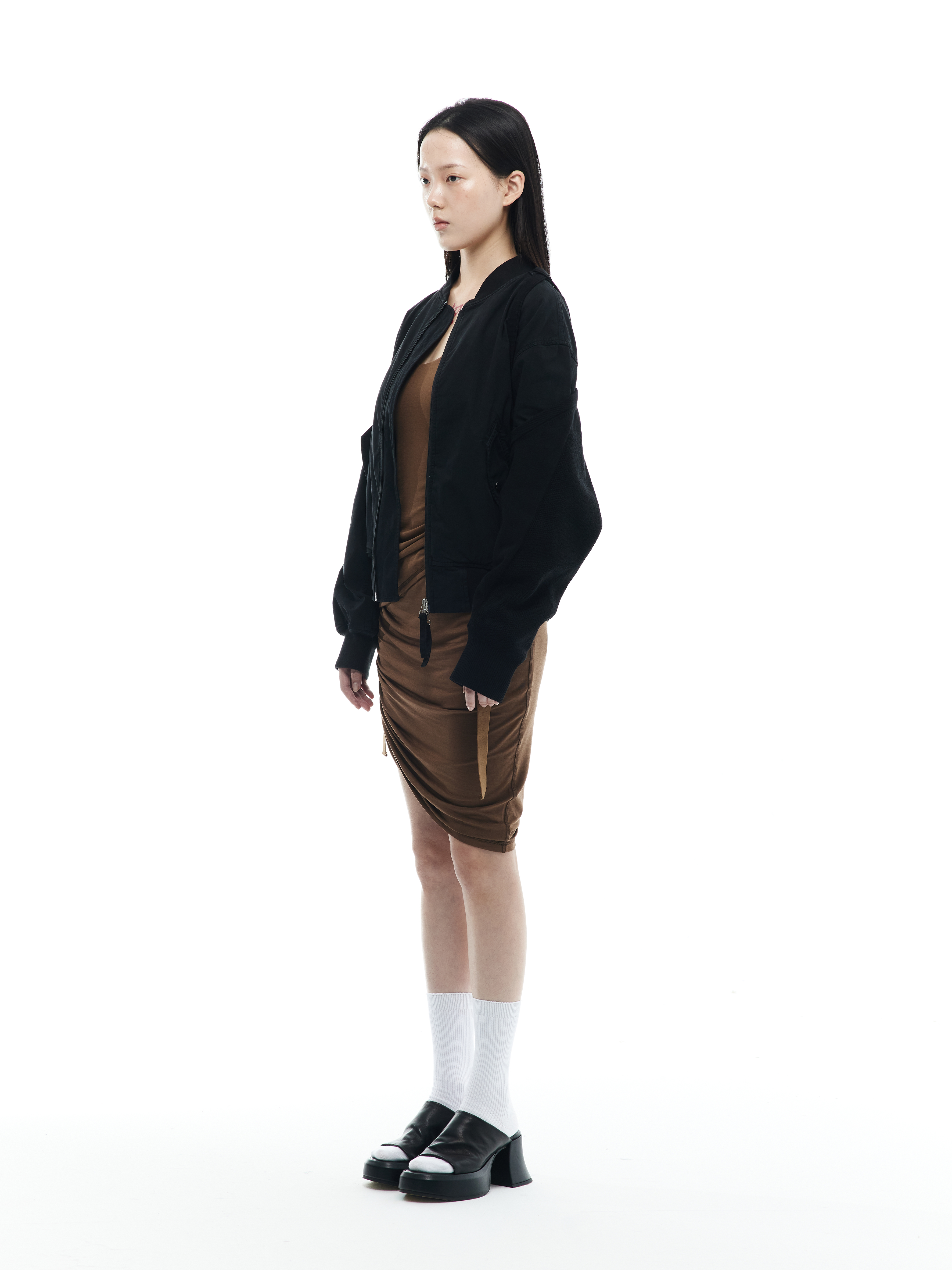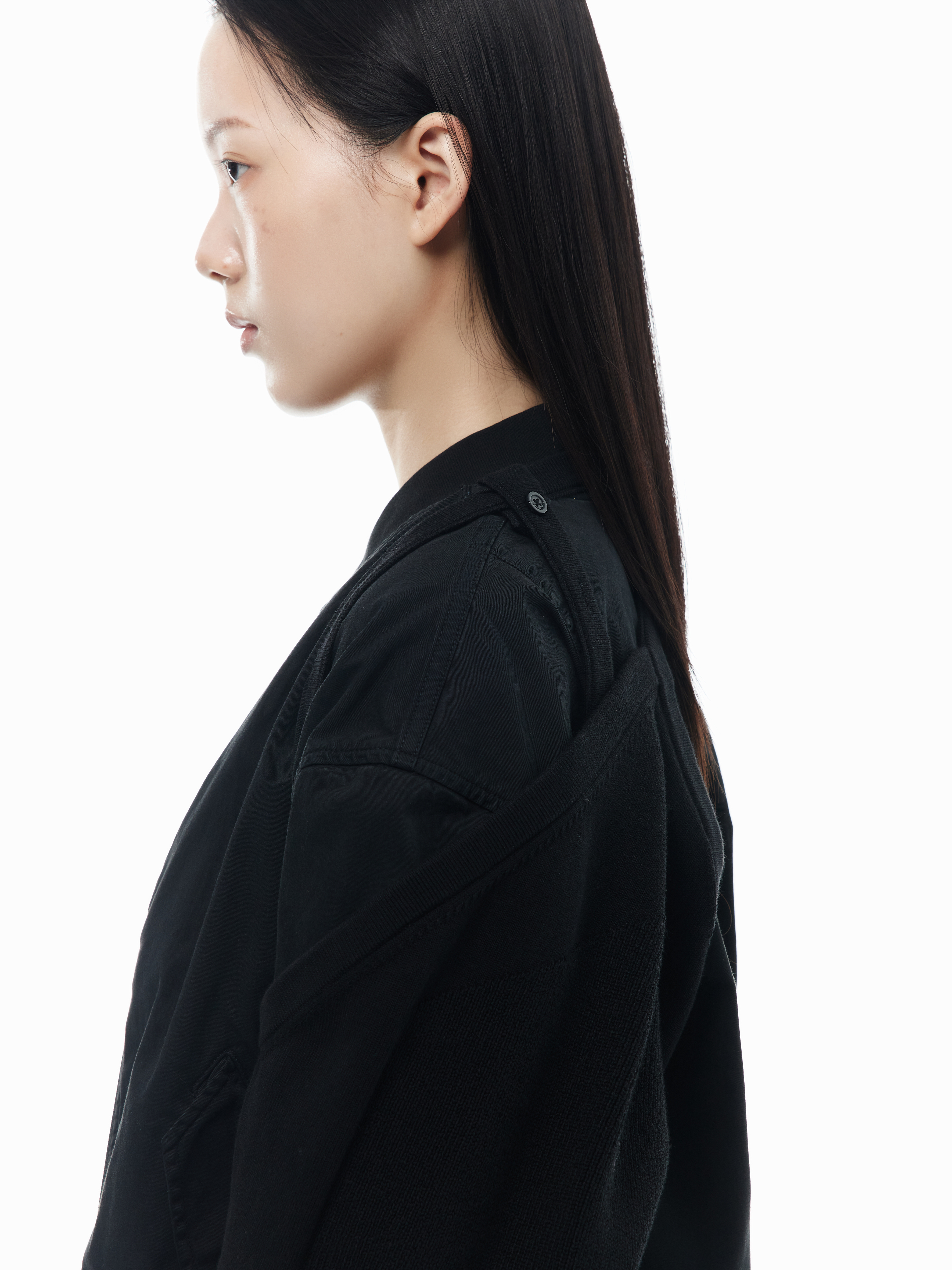 - Removable sleeve in rib knit with harness detail