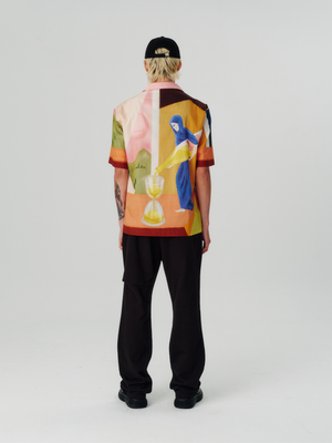 The SANDMAN bowling shirt is perfectly matched with summer styles and crafted with an artistically printed cotton poplin fabric.
