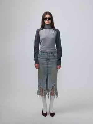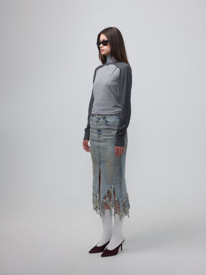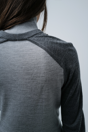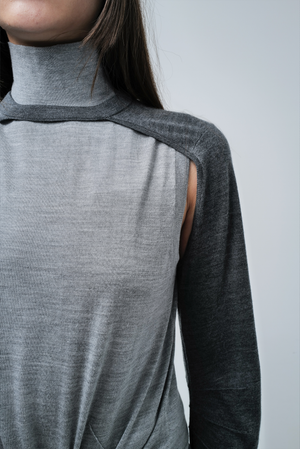 - Turtleneck sweater with detachable sleeves in a fine wool-silk blend, sculpted by seams that wrap around the body to create a softly curved silhouette