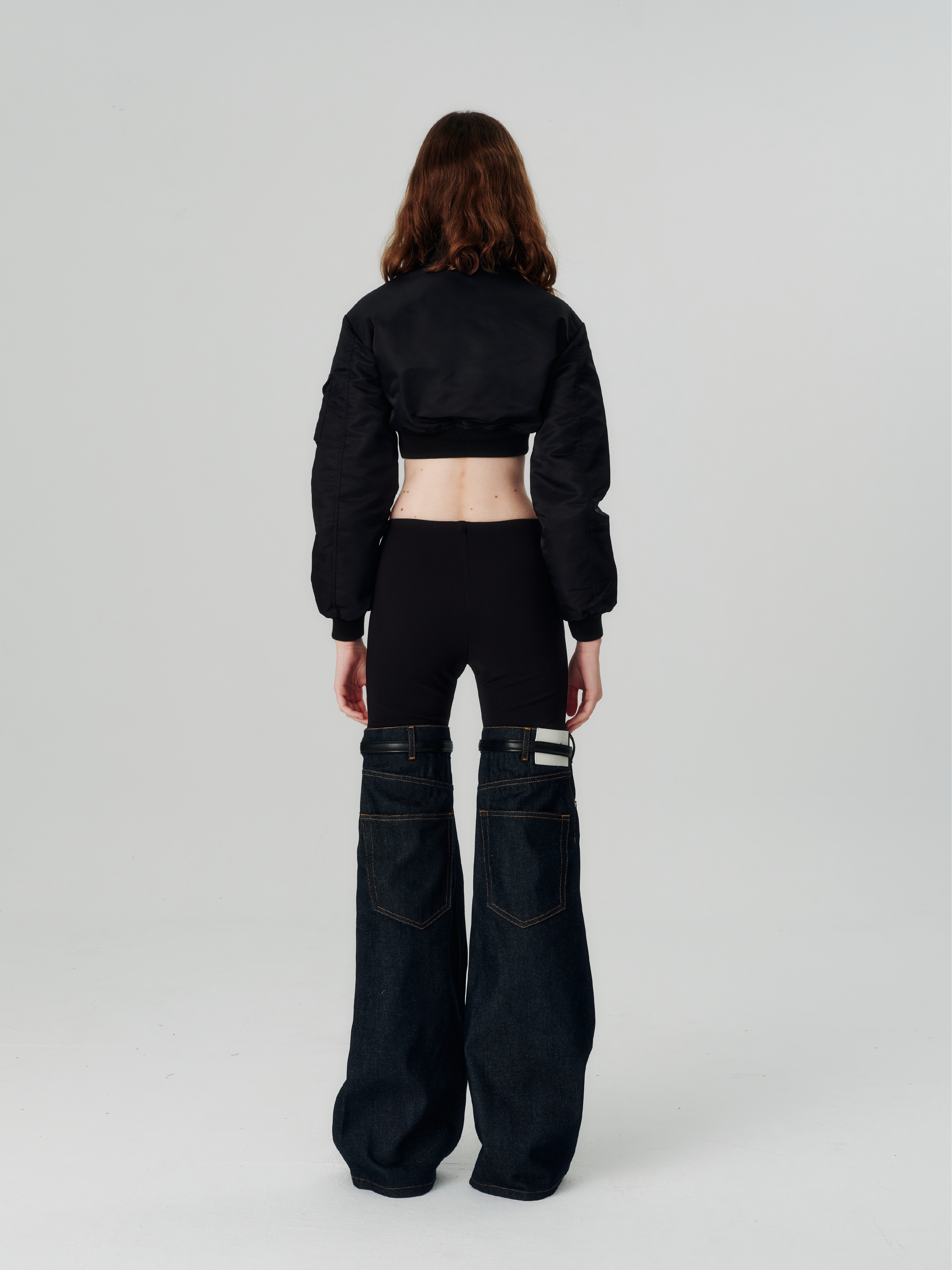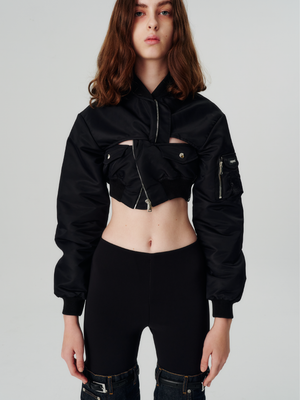 This cut-out cropped bomber jacket features adjustable fastening on the front, as well as pockets in the sleeve for a comfortable and stylish fit.