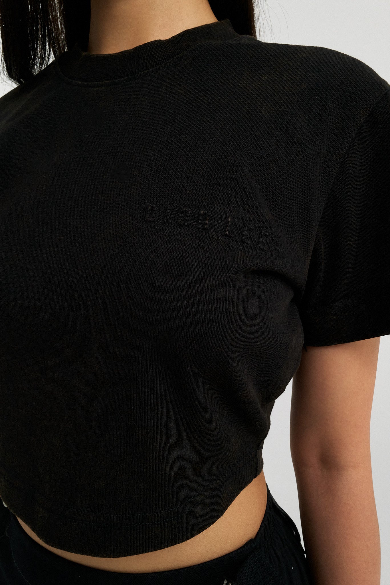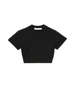 - Crew neck cropped t-shirt with embossed logo at chest
