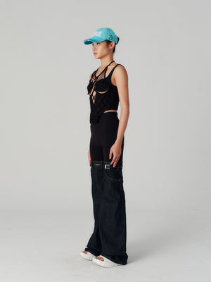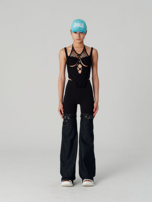 This fishnet wire corset top is your go-to for a chic, elegant look. The eye-catching feature of this top is the intricate cutouts, giving it a vintage feel.