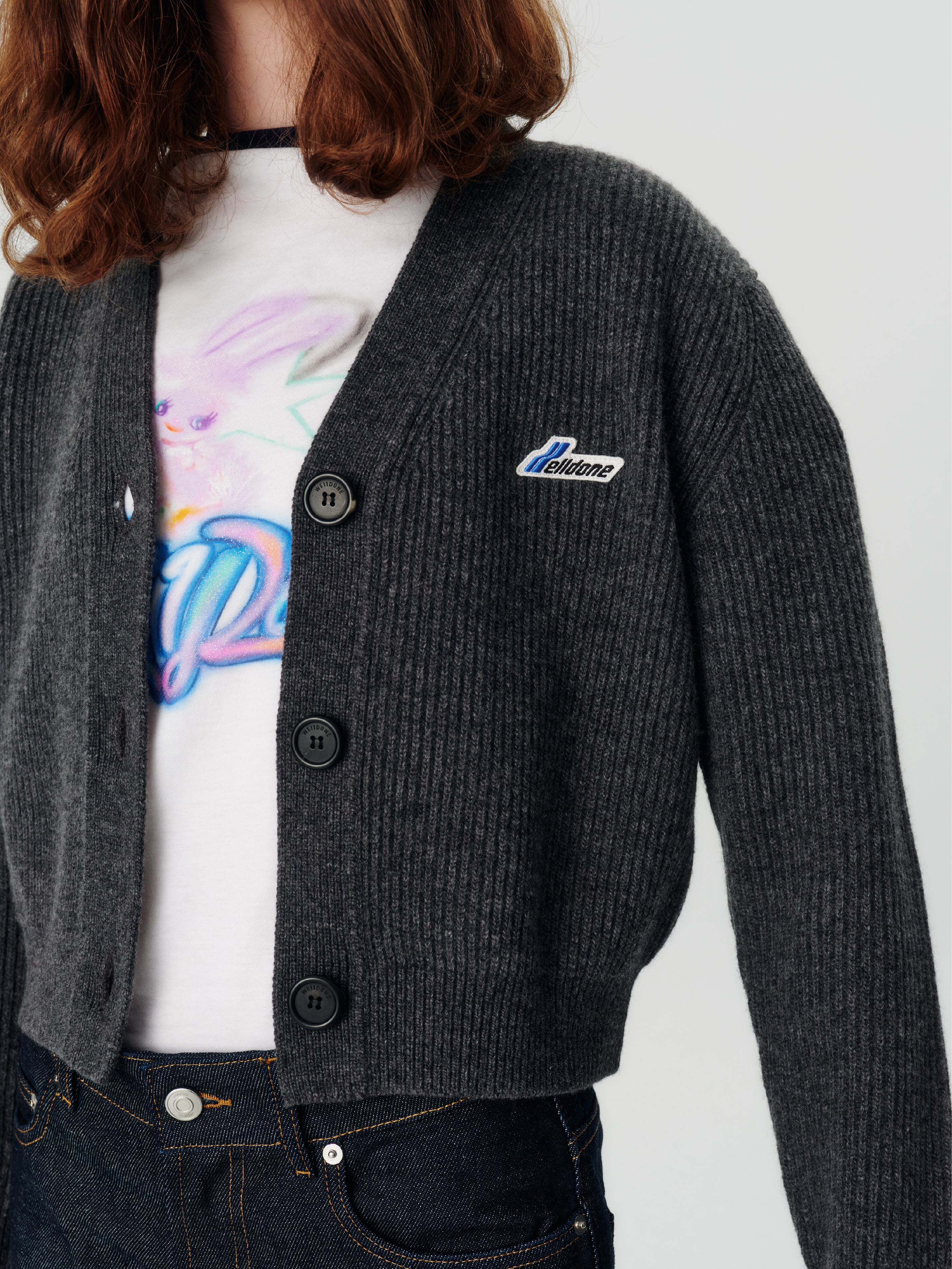 Logo patched short cardigan