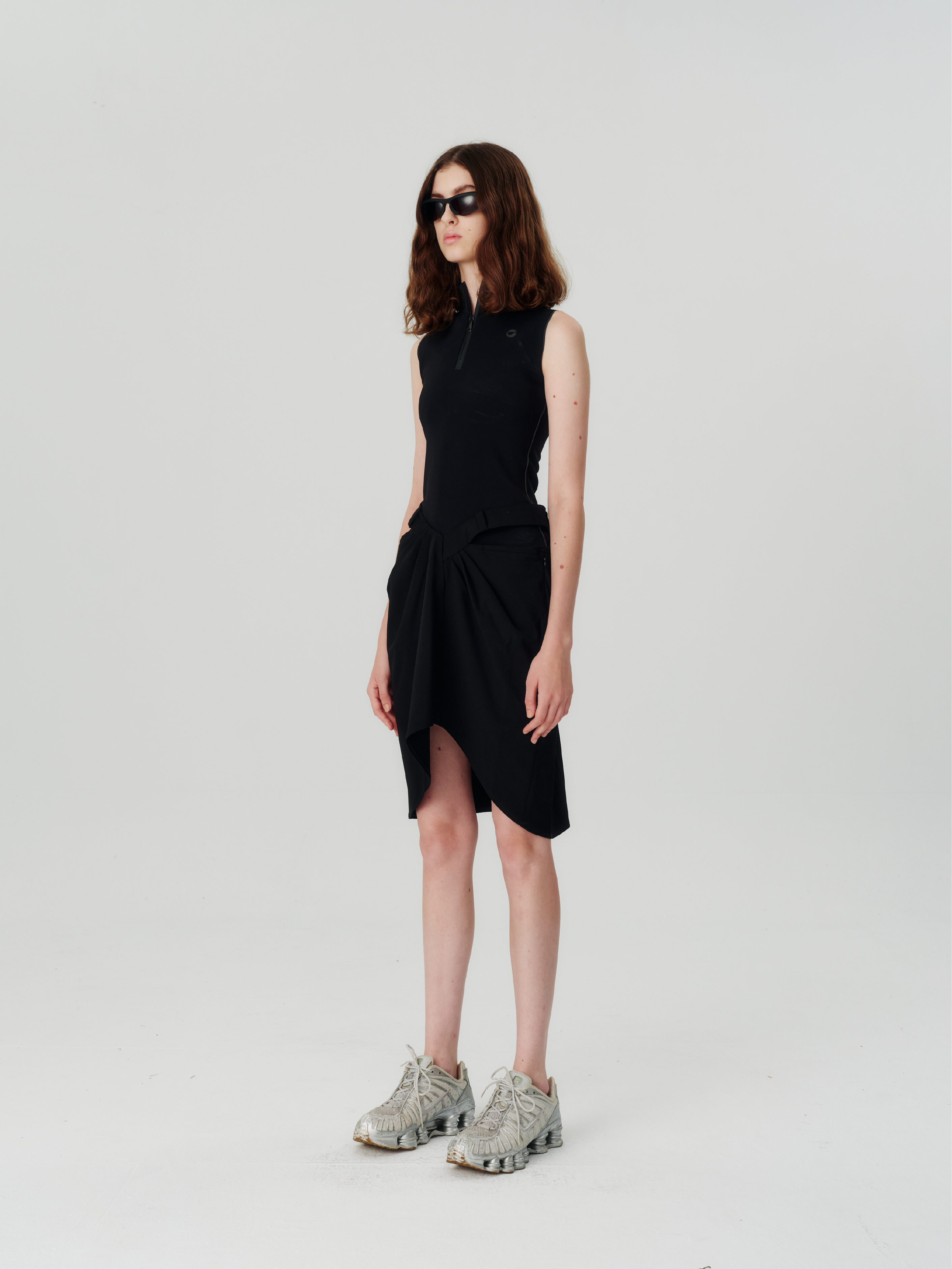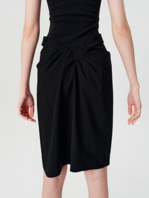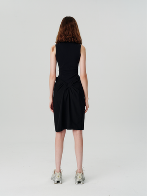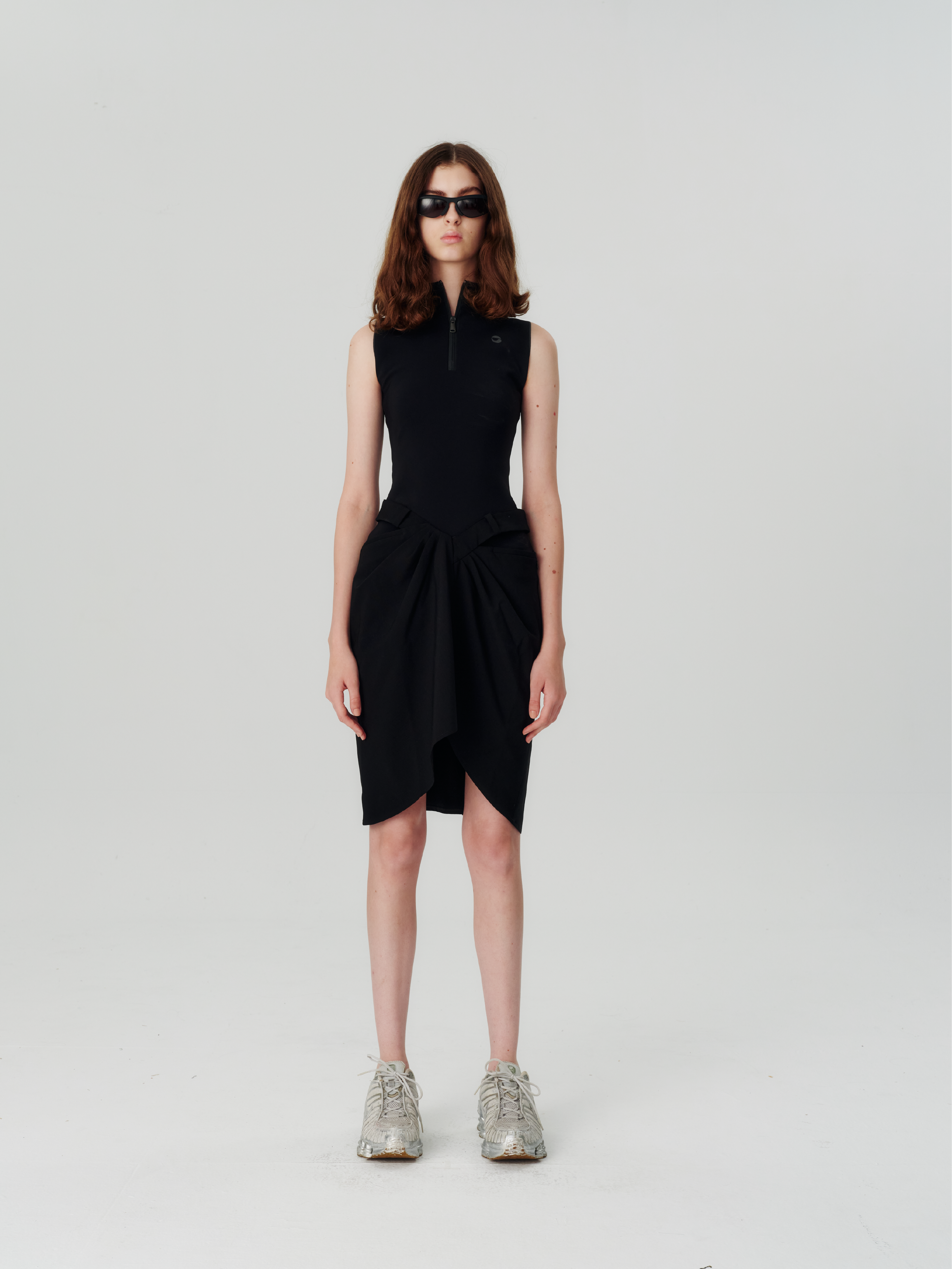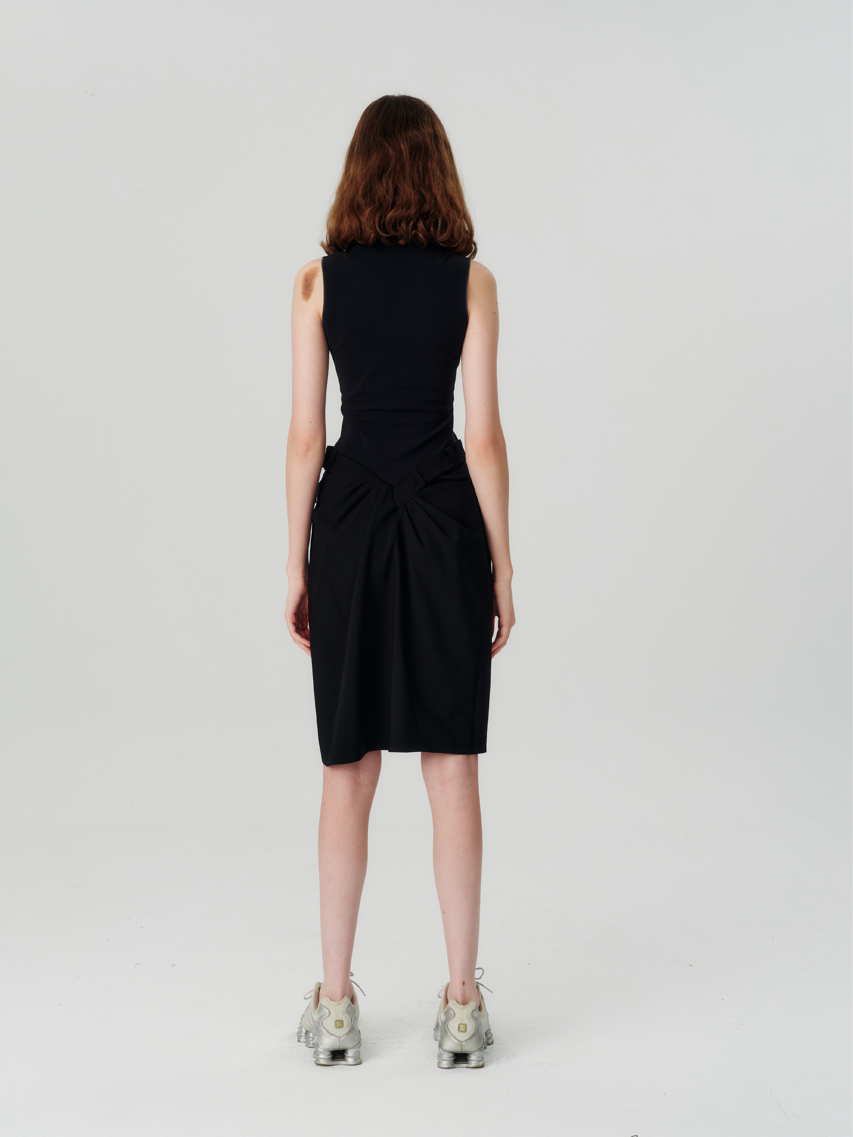 This hybrid-tailored dress features an innovative cut specifically designed to flatter the waist.