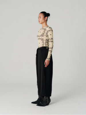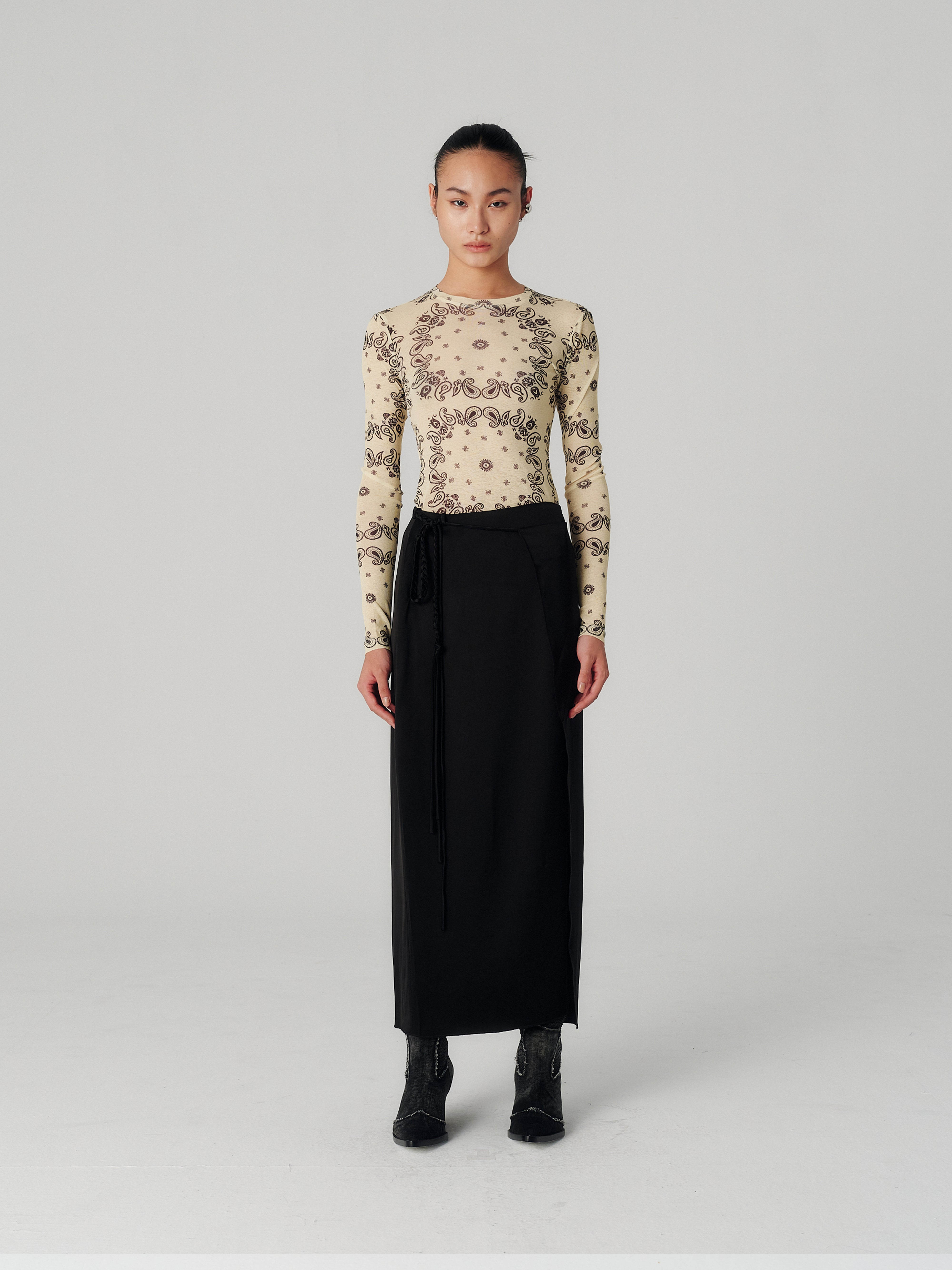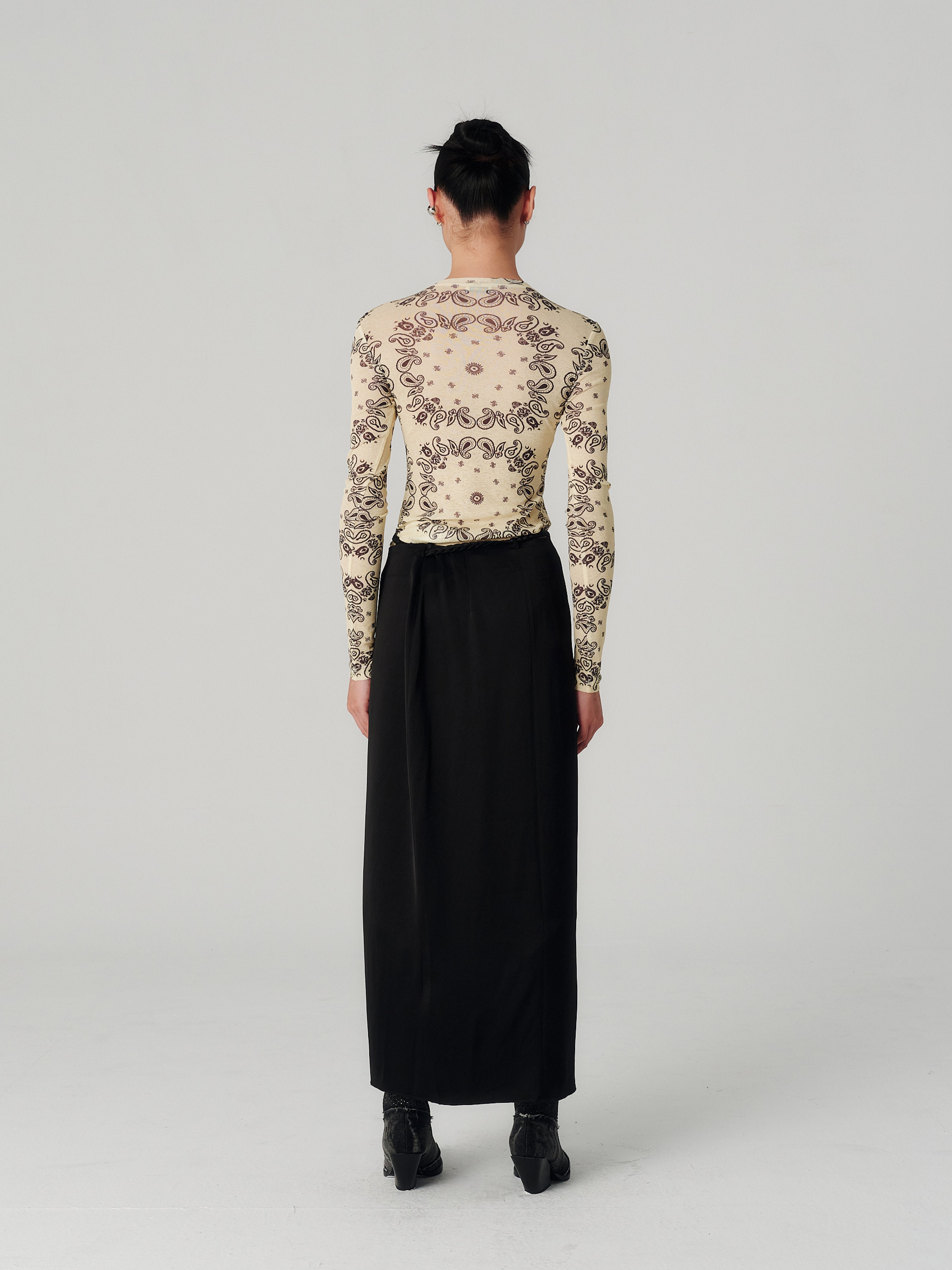 - A single tie-up detail at the side