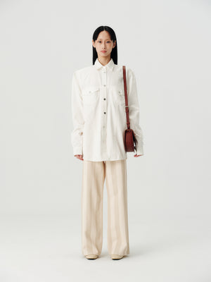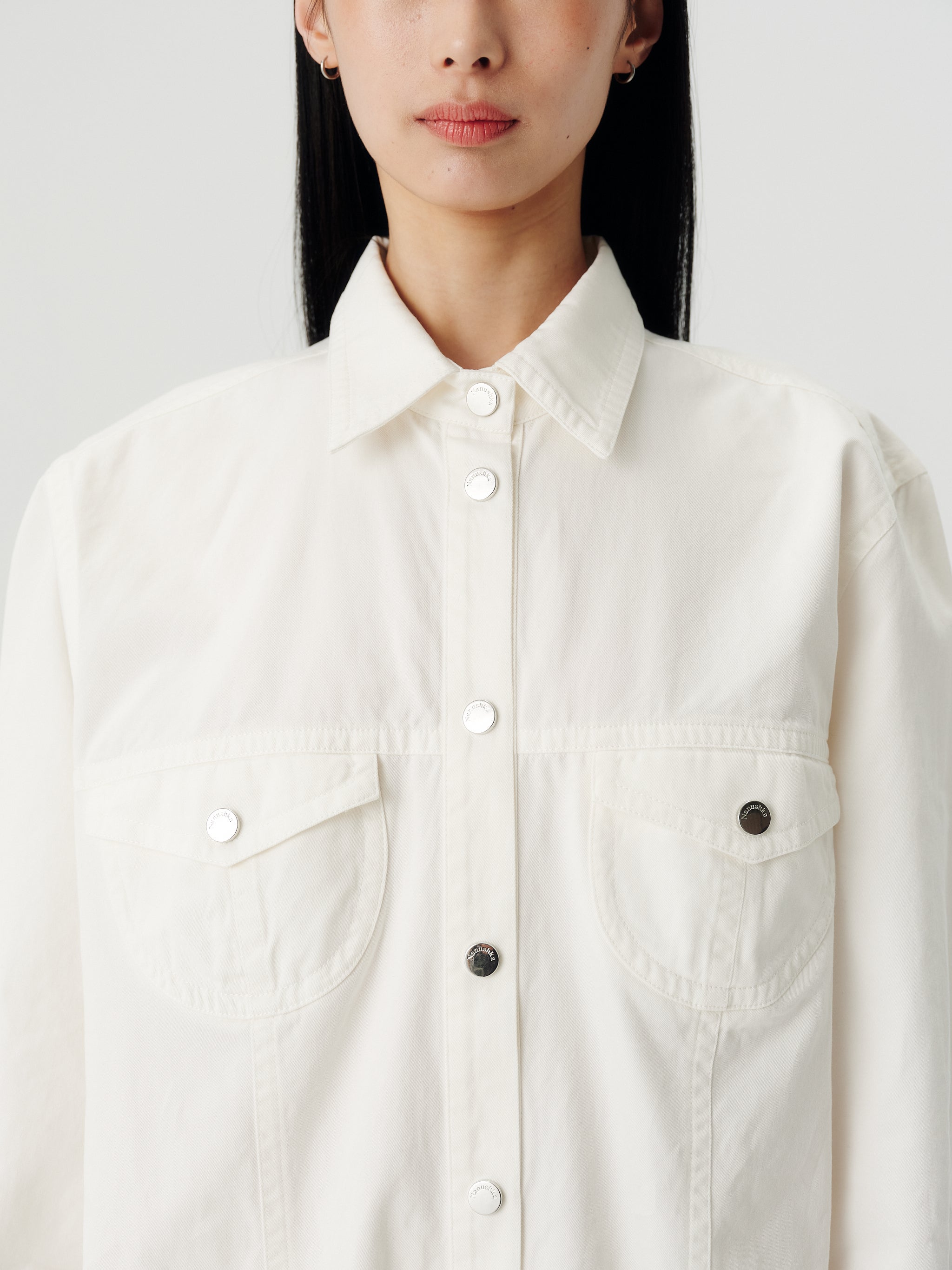 - The Corinna shirt juxtaposes utility with sculptural detail