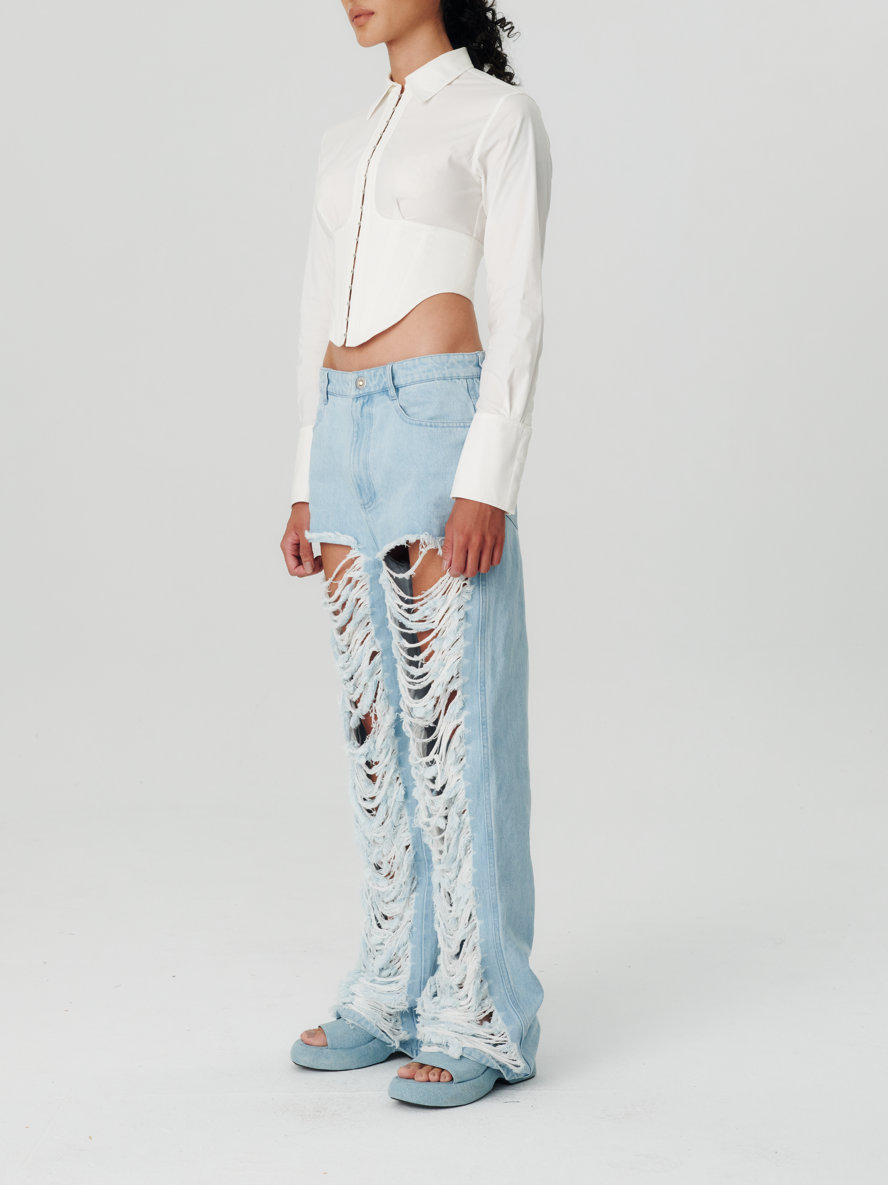 The undercorset shirt is tailored fit and classic. With a subtle detail of sexiness, it's perfect for formal and casual occasions.