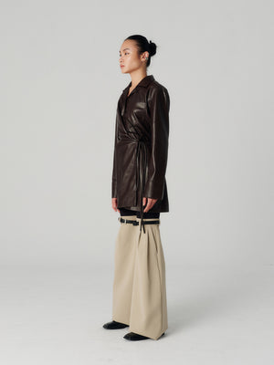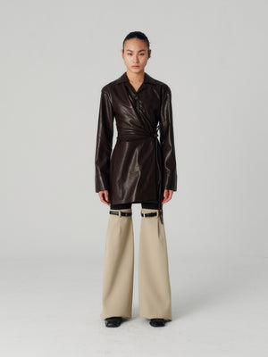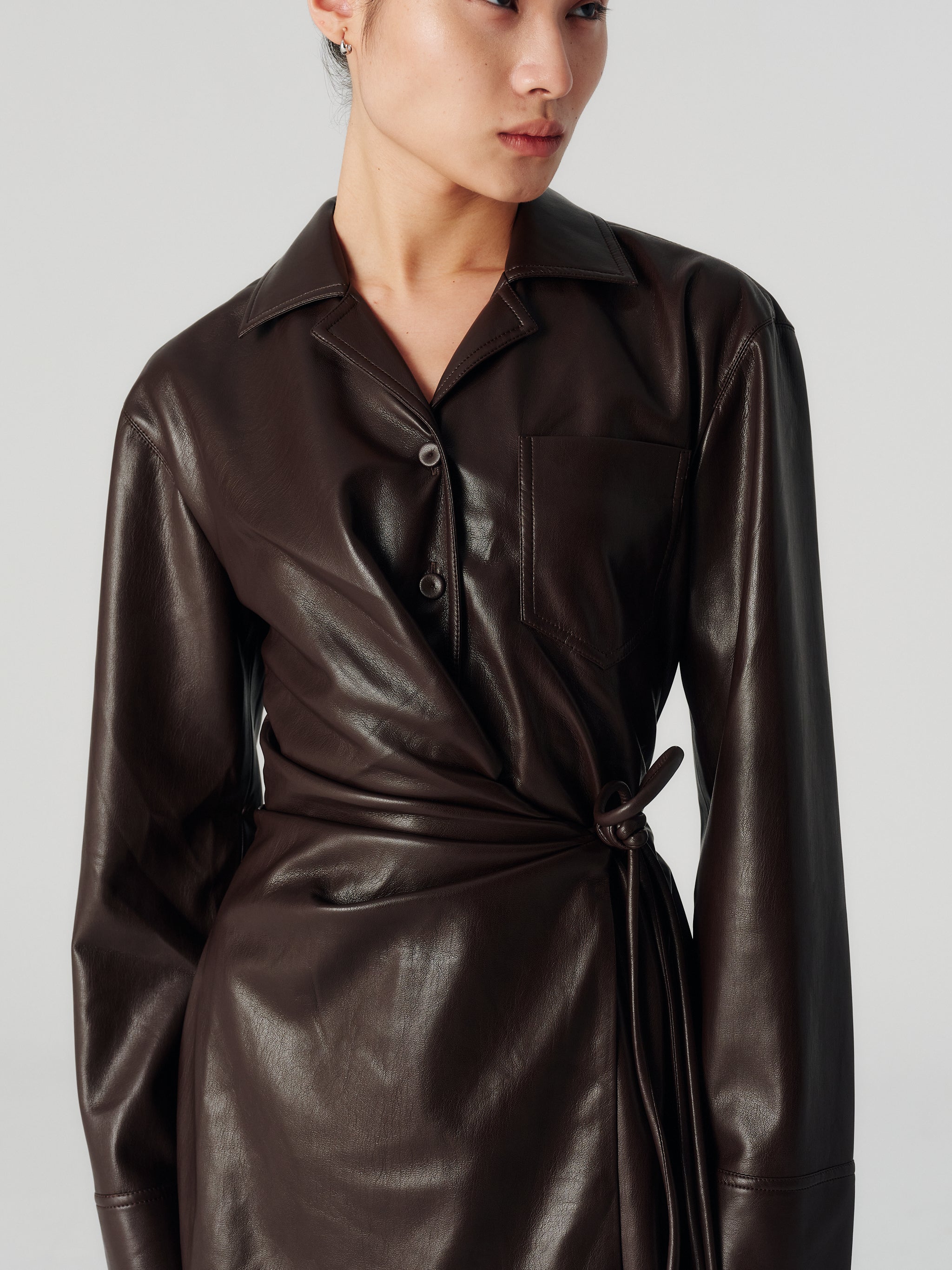 Designed with a contemporary silhouette and is intricately draped for a wrap-effect look.