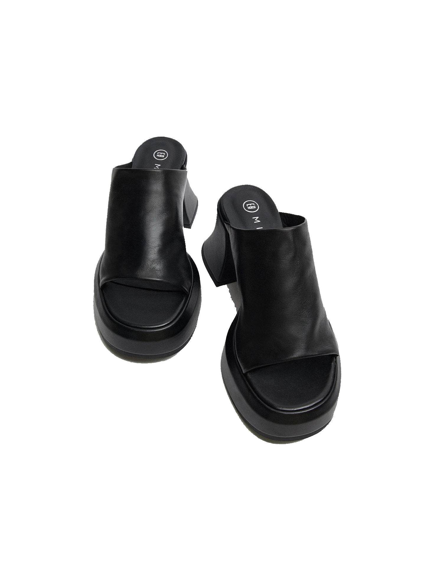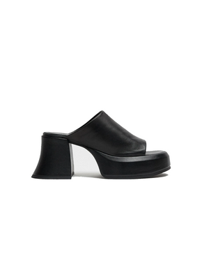 • Combining curved lines with plenty of volume, her super soft black leather upper supports the foot with a slip-on sock-like strap, crafting a sandal that is elevated yet an everyday construction