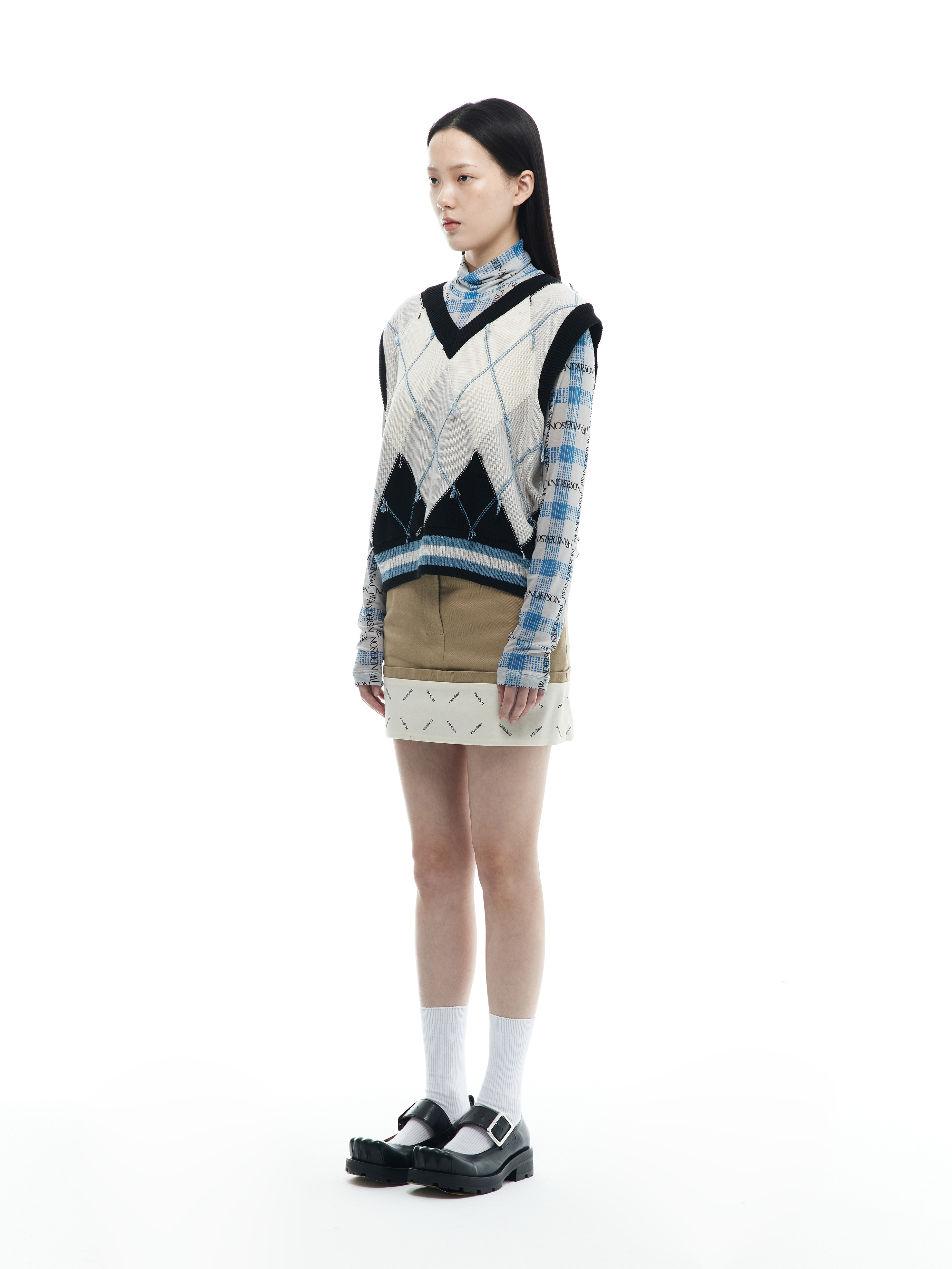 Bicolor Logo Printed Rolled Up Mini Skirt