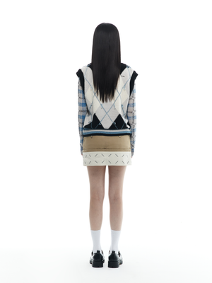 Bicolor Logo Printed Rolled  Up Mini Skirt
