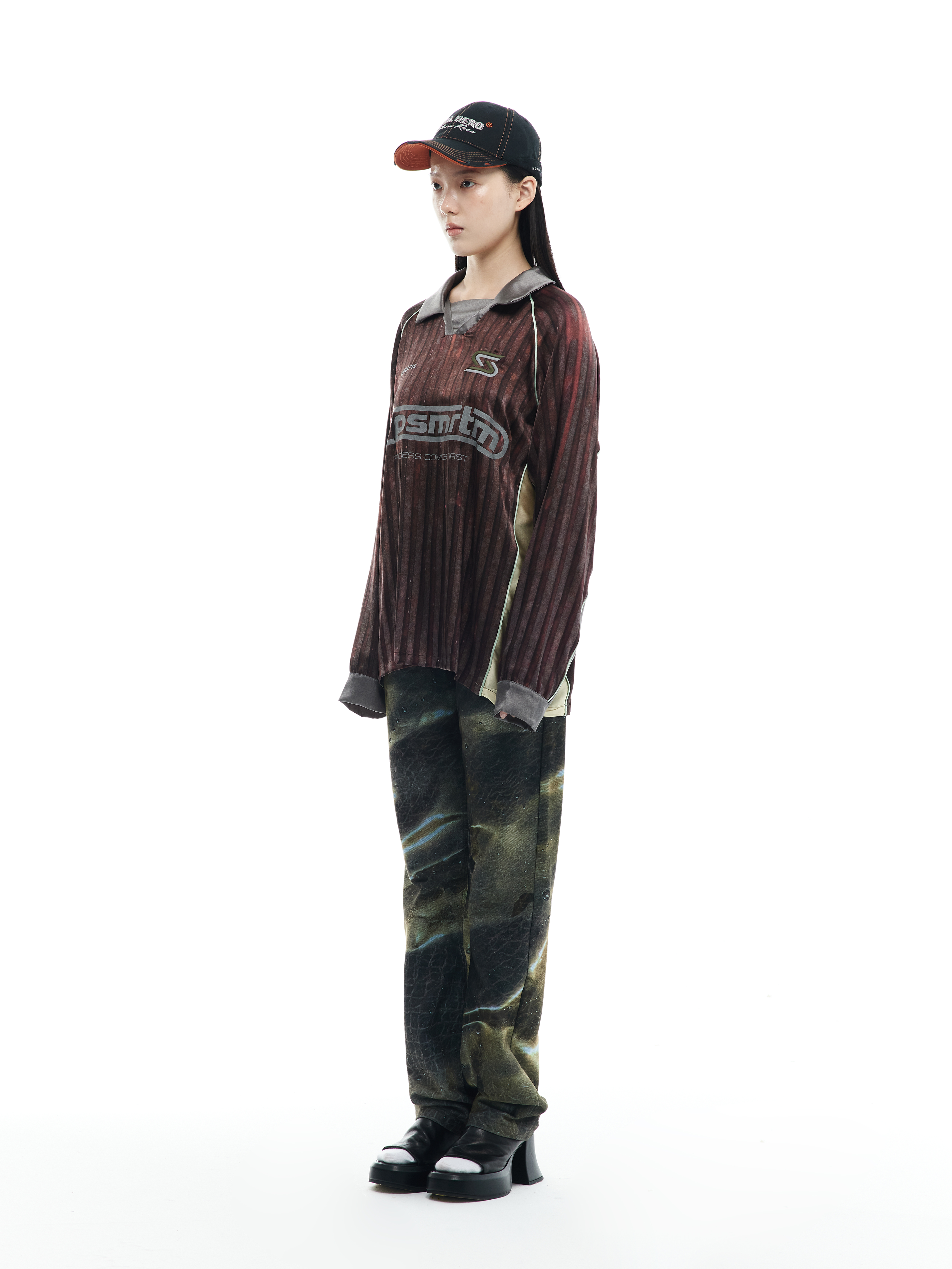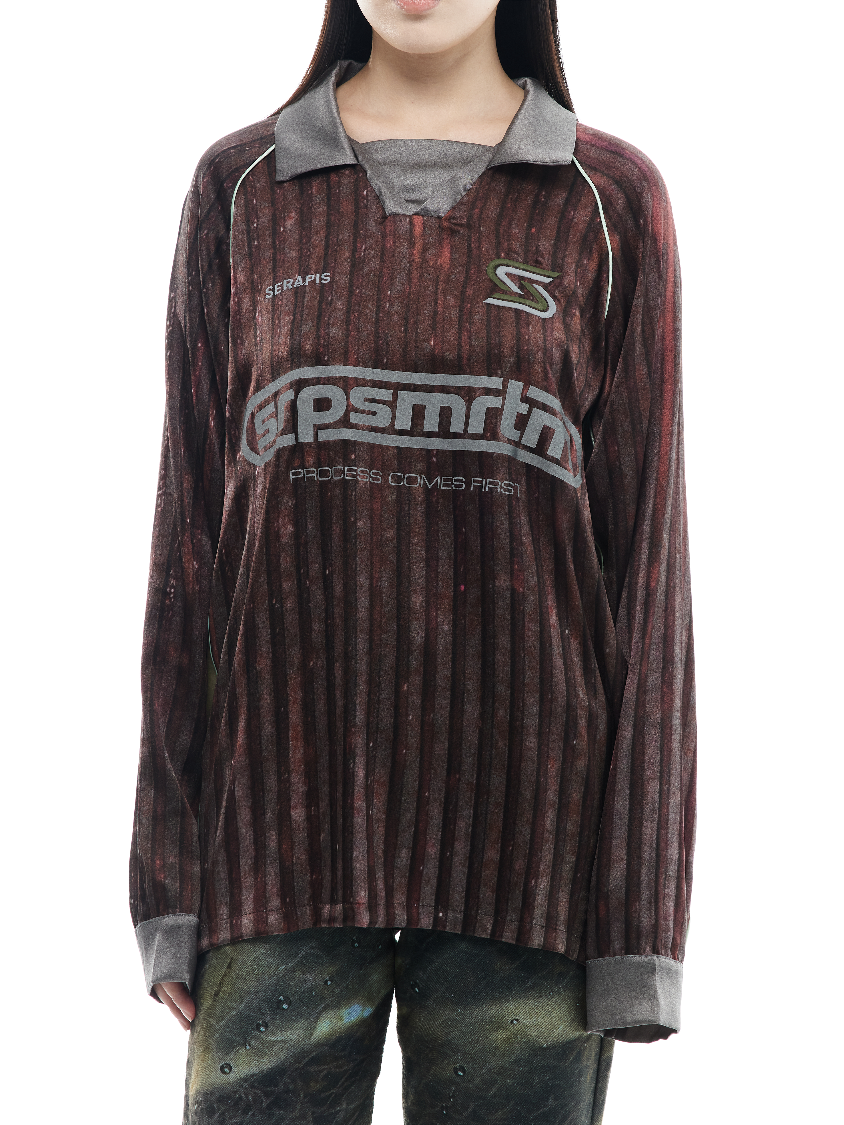 • Aub stripes long sleeve football jersey entirely made of satin silk with a lustrous sheen