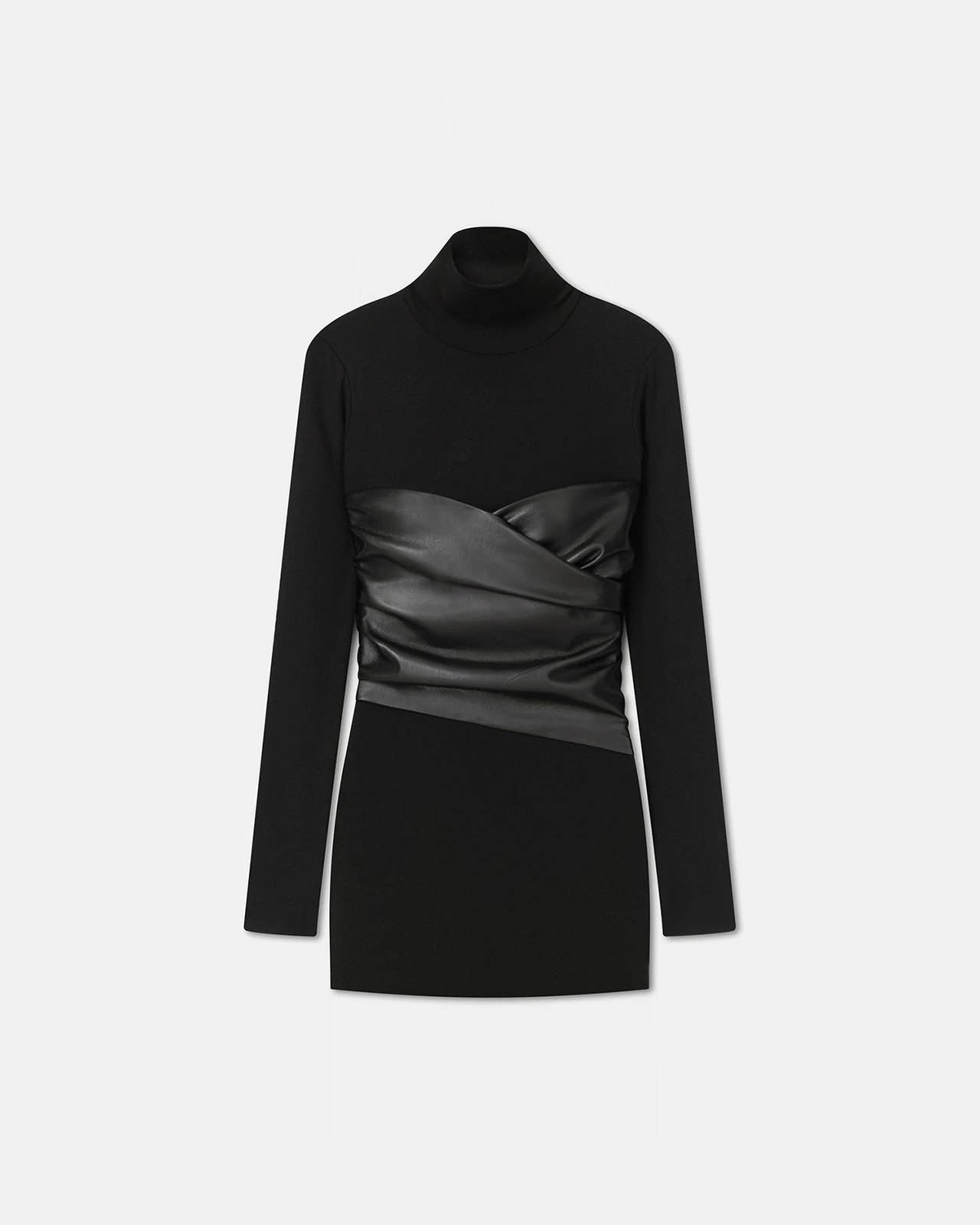 It’s made from mesh jersey for a figure-sculpting fit and finished with a draped Okobor™ alt-leather panel to further flatter the frame