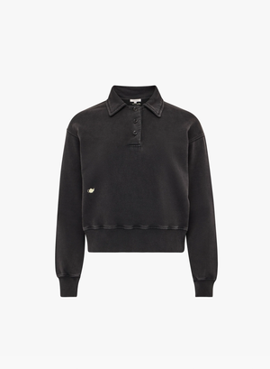 Cropped fit polo sweatshirt complete with all-over garment dye effect