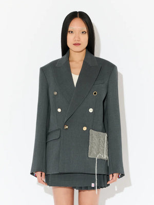 •  Main: 64% Polyester 34% Viscose 2% Elastane Undercollar: 100% Wool Lining: 44% Cupro 31% Acetate 25% Viscose Patch: 80%Rws Lambswool 20% Recycled Nylon