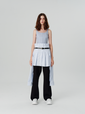 This pleated skirt features shirt-like styling and a button-up opening. With no belt included, it also provides an outer layer of coverage.