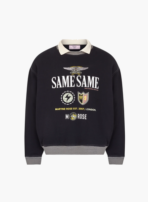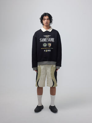 - Loose fitting sweatshirt with a built in polo collar and screen printed seasonal artwork