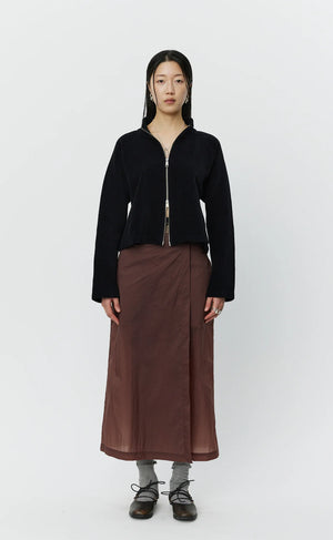 - The Classic Wrap Skirt is calf length with a regular fit. Featuring a button fastening at the front, two side pockets and a patch pocket at the rear