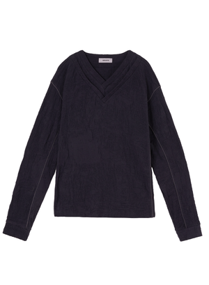 • Jacquard-knit sweater with a layered v-neck design