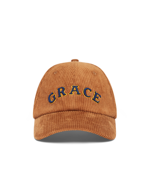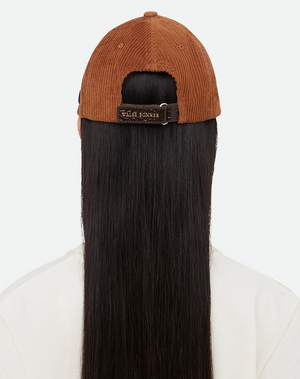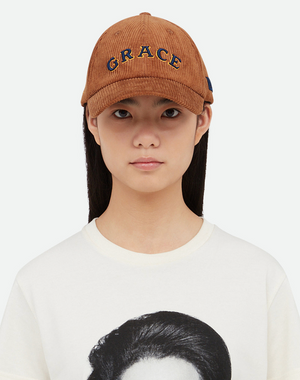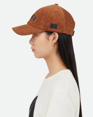 - Classic baseball cap rendered in a cotton corduroy fabric with embroidery motifs on the front and side panels