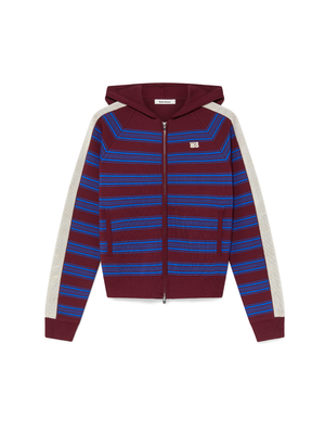- An easeful viscose knit with a distinctive woven stripe and signature crochet trim on the sleeves
