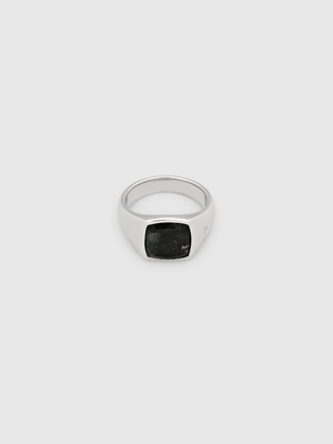 - The Kay Ring Black Larvikite is a medium sized signet ring, a Tom Wood classic. It holds a custom cut larvikite, bezel set on a bright polished silver surface