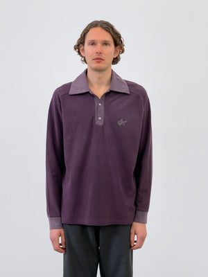 - Purple long sleeve polo shirt made of locally-sourced cotton piqué featuring an SM monogram