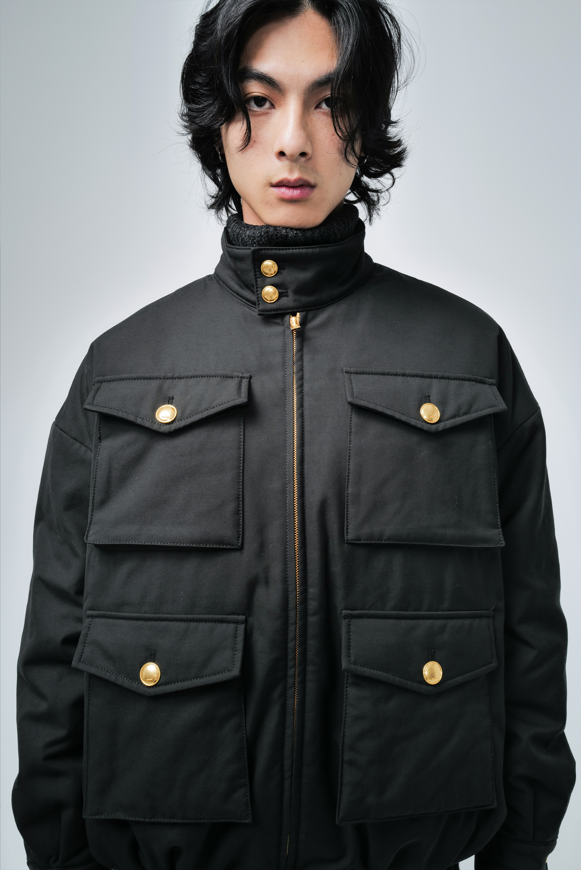 - Buttoned stand collar